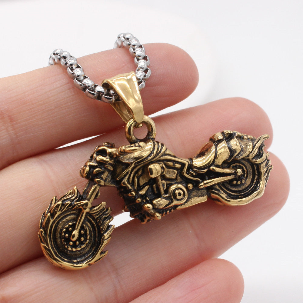 Embrace your adventurous spirit with our European and American personalized retro motorcycle men's pendant. Crafted from top-quality titanium steel, this pendant is not just a piece of jewelry; it's a statement of style and individuality.