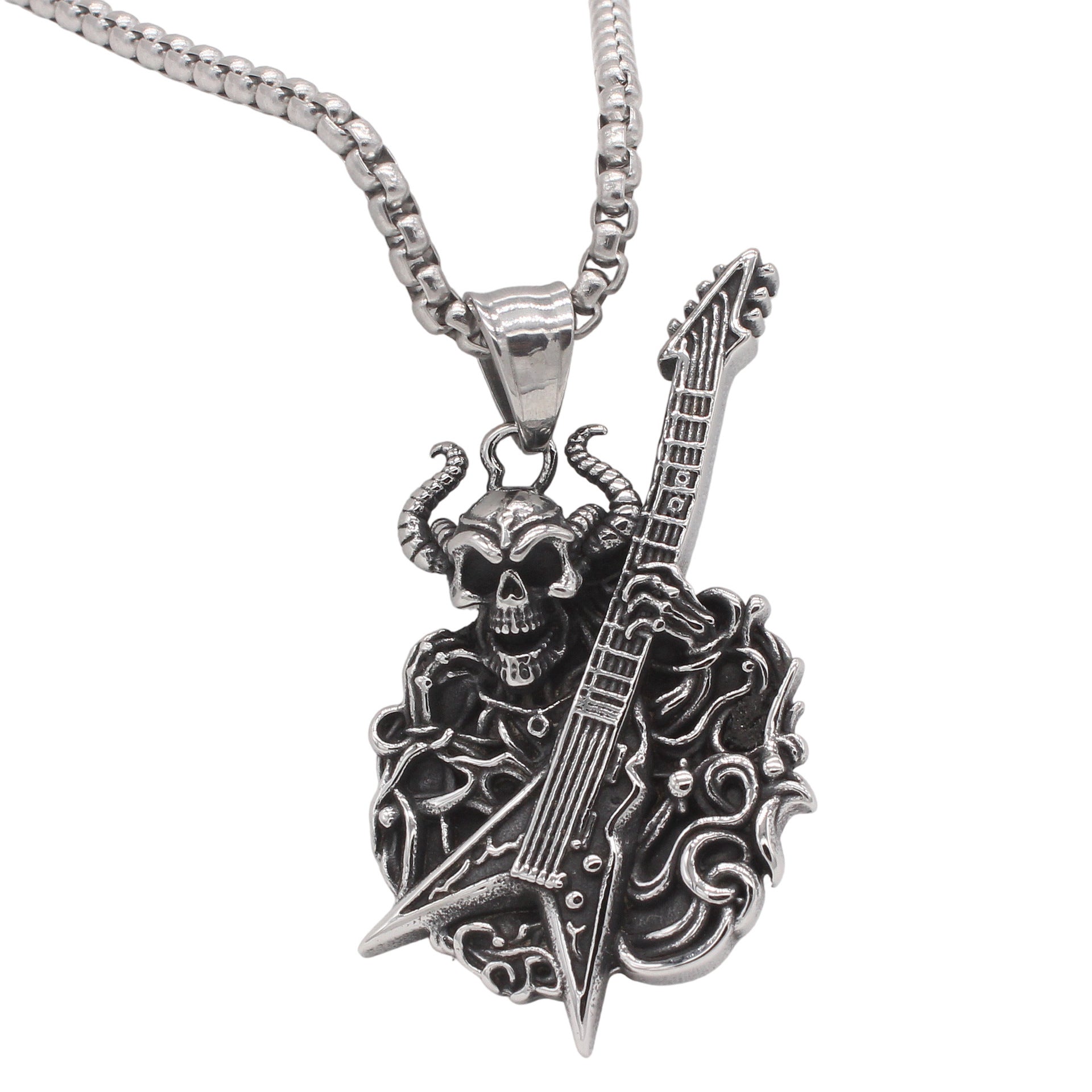 Planderful Mens Skull Pendant Steel Vintage Guitar