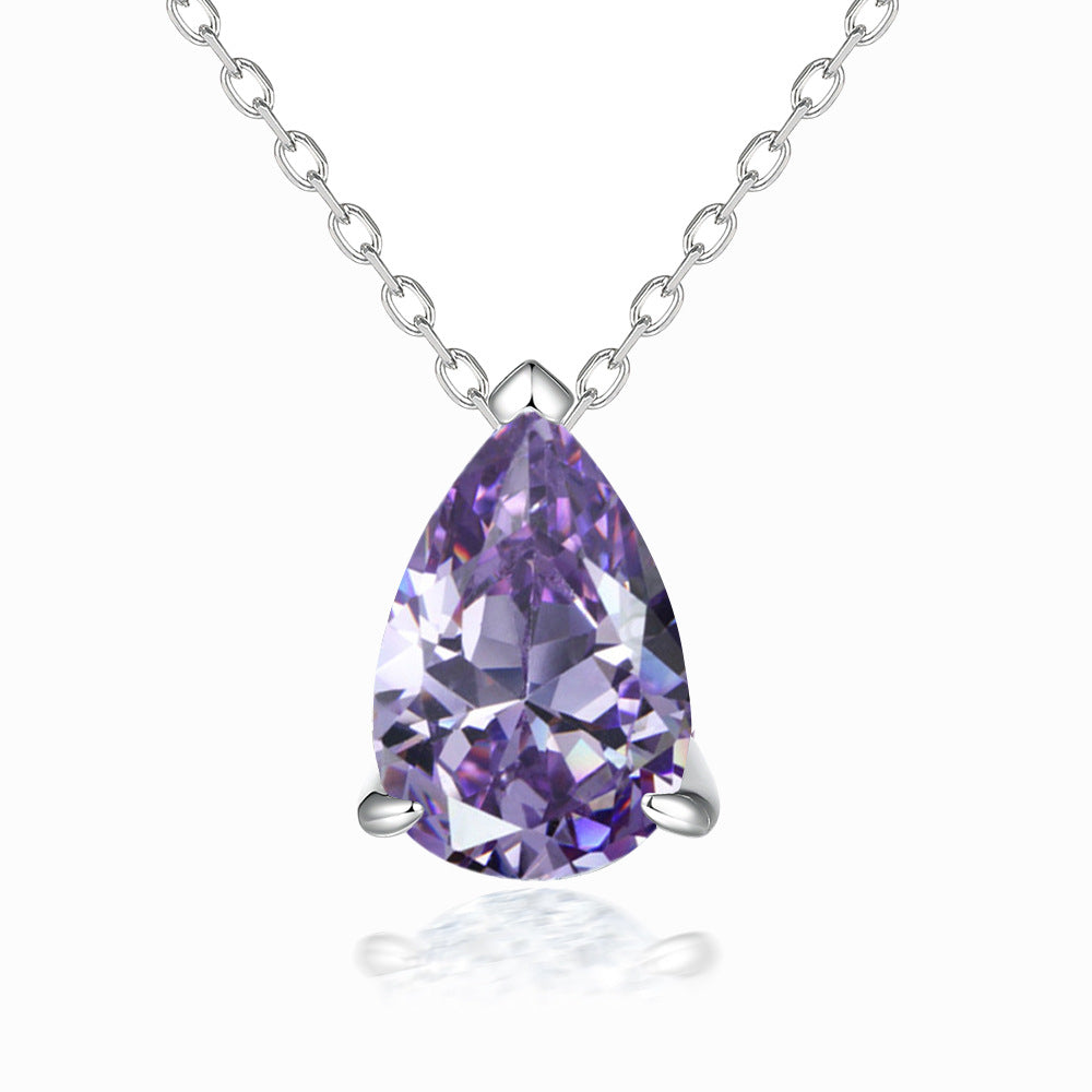 Pear Drop Zircon Pendant Silver Necklace for Women