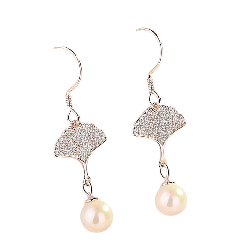 Ginkgo with Pearl Silver Drop Earrings for Women