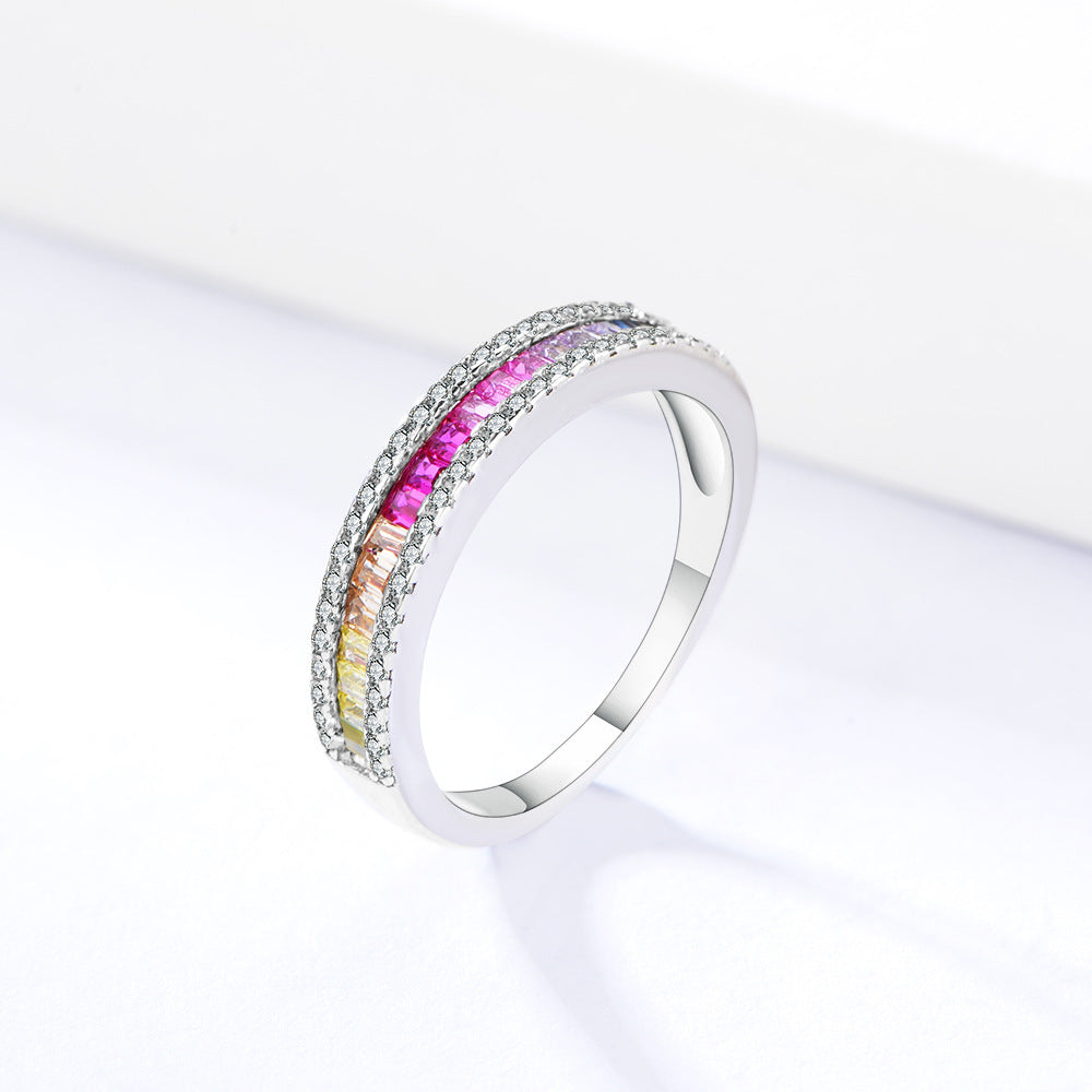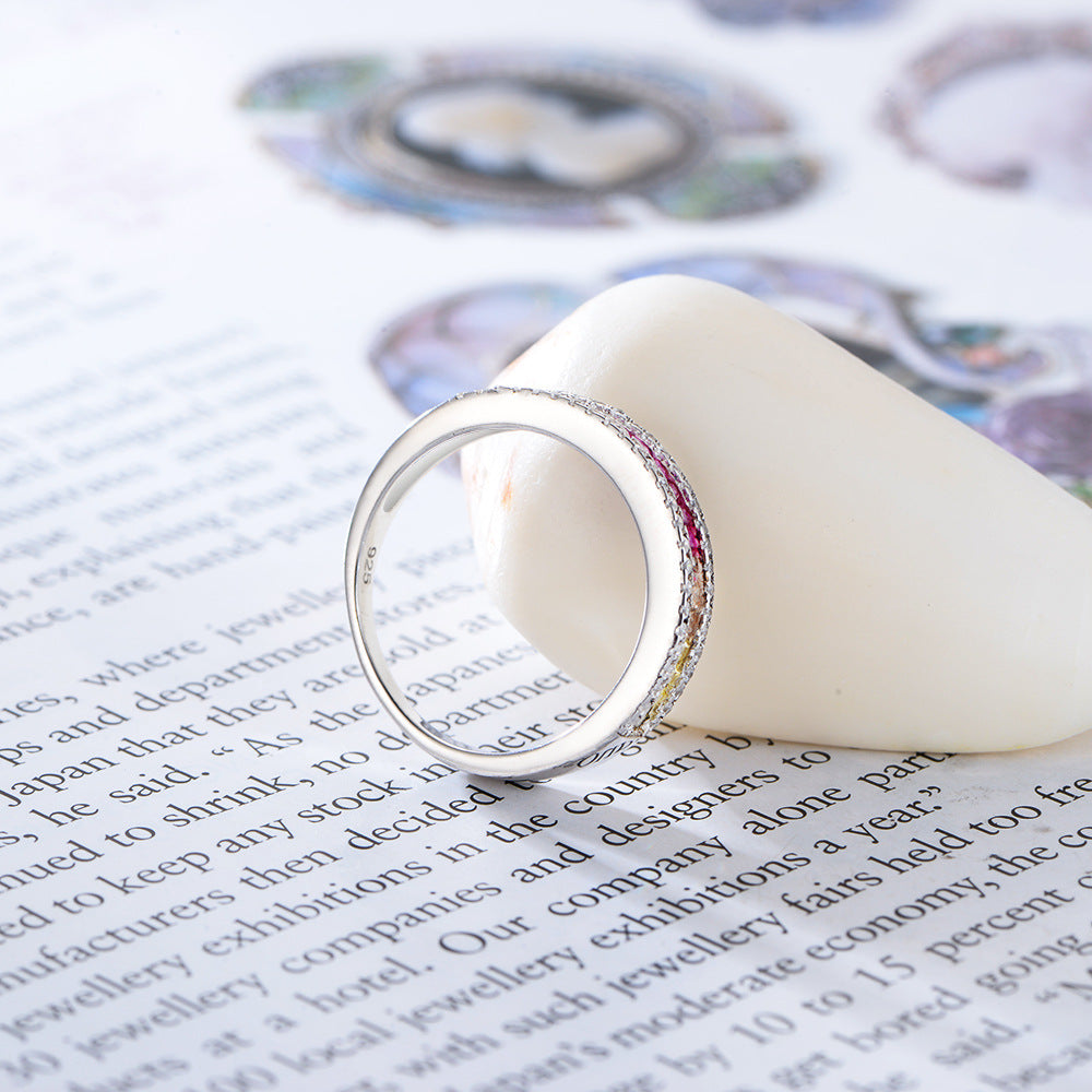 Colourful Zircon Plated Platinum Eternity Silver Ring for Women