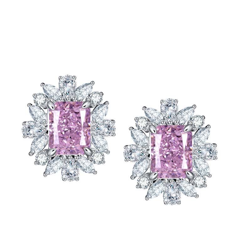 Impress with this Luxurious Halo Rectangle Pink Zircon Silver Stud Earrings. Featuring an eye-catching 7*9mm rectangular pink Zircon with glittering petals, you're sure to turn heads wherever you go. It's perfect for special occasions or everyday wear.