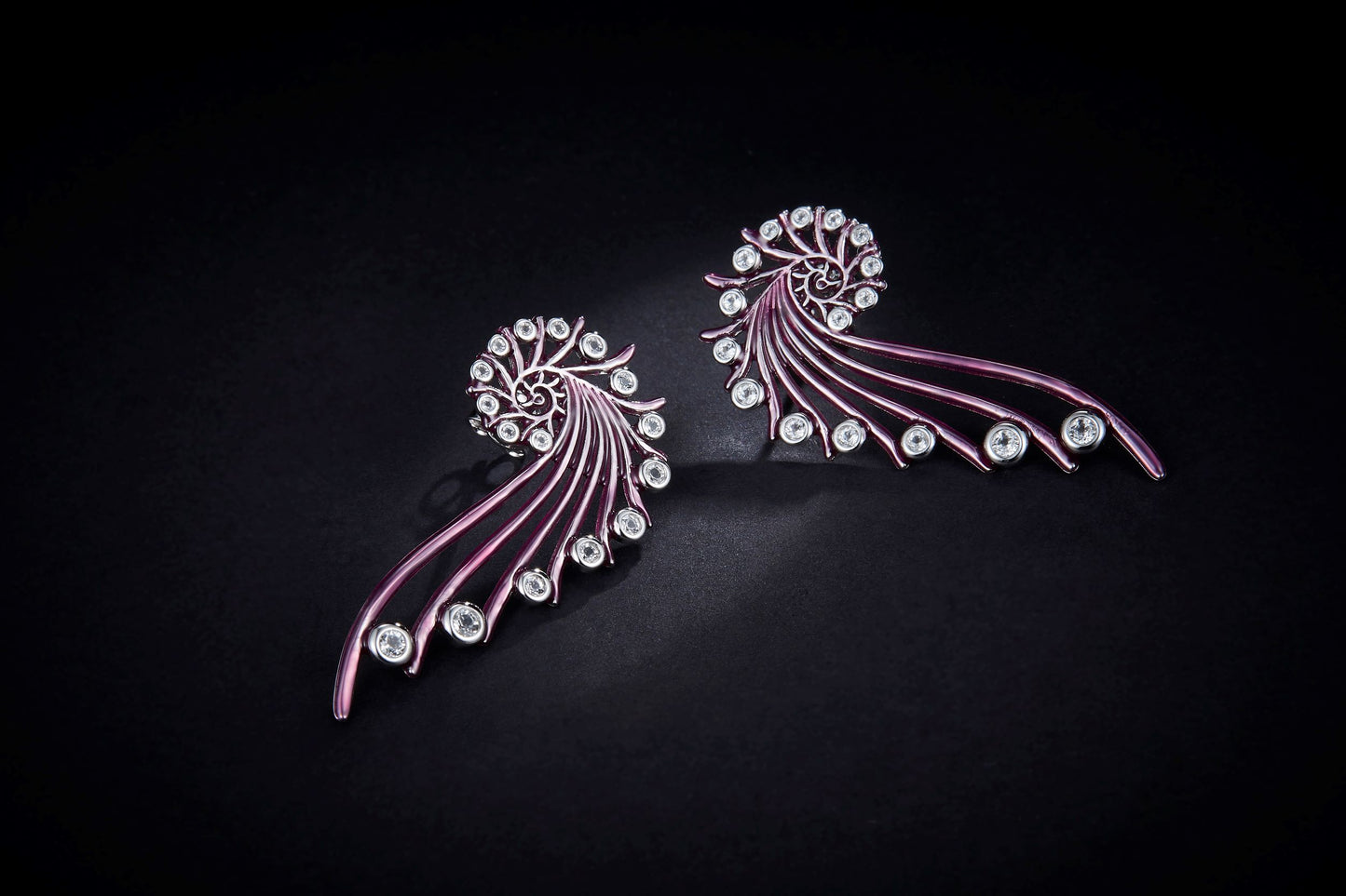 Add a stunning touch to your look with this elegant Coral Purple Enamel Silver Drop Earrings. Expertly crafted from sterling silver and sparkling with topaz, this earrings will truly take your outfit to the next level.