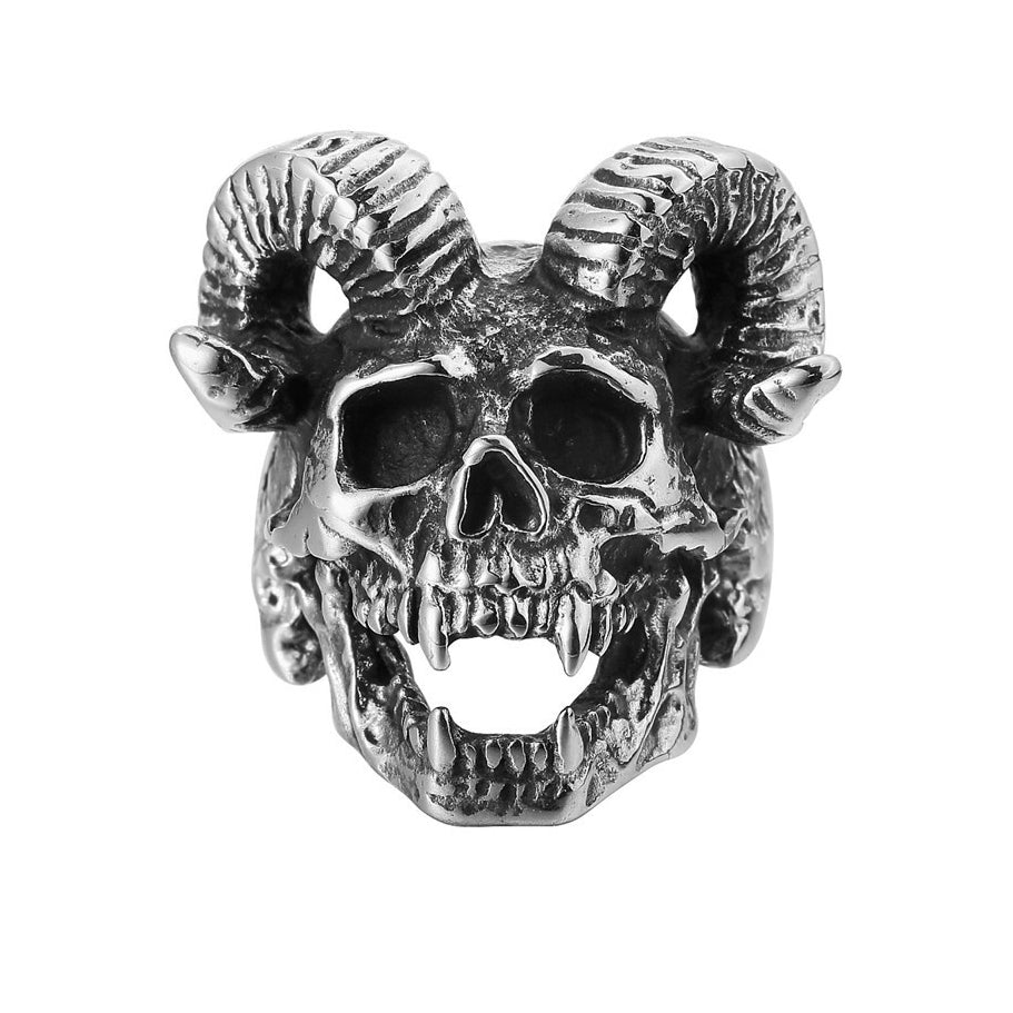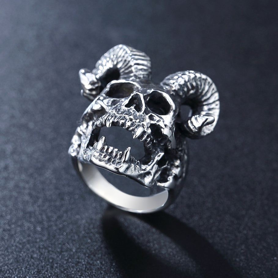 Halloween Monster Sheep Horn Skull Head Titanium Steel Ring for Men