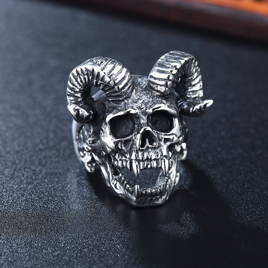 This unique Vintage Monster Sheep Horn Skull Head Titanium Steel Ring for Men offers a strong, durable construction made with titanium steel for a timeless look and lasting wear. The Monster Sheep Horn Skull Head design is sure to turn heads in halloween and become a conversation piece.