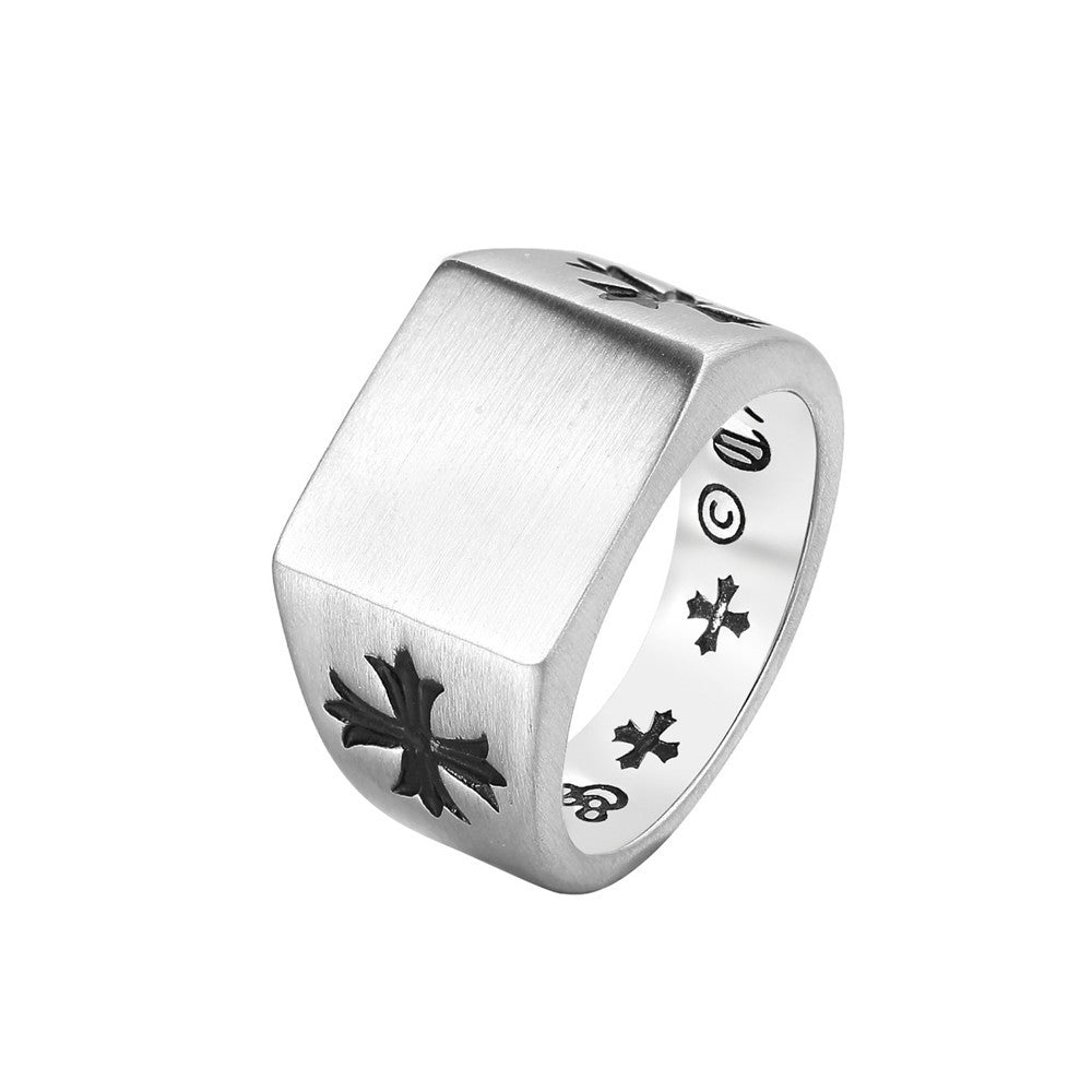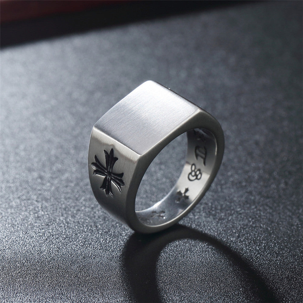 Cross Flower Brushed Titanium Steel Ring for Men