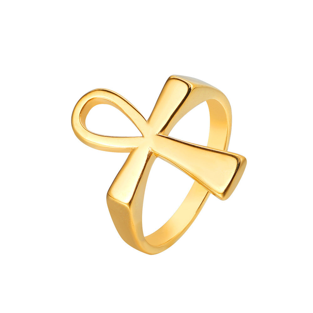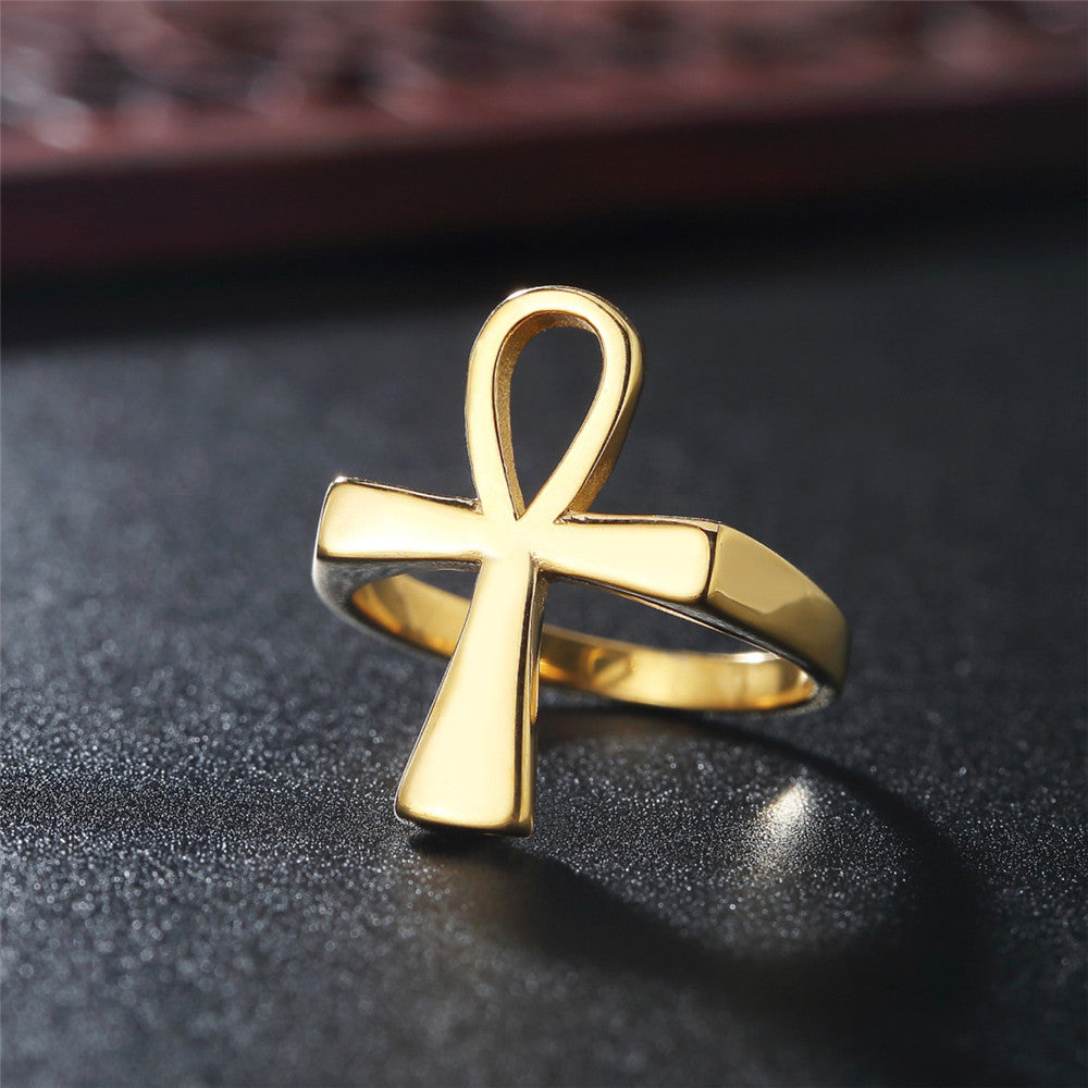 Egyptian Ankh Cross Polished Titanium Steel Ring for Men