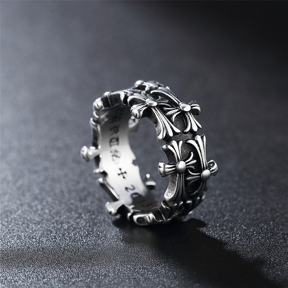 Double Row of Cross Flower Titanium Steel Ring for Men