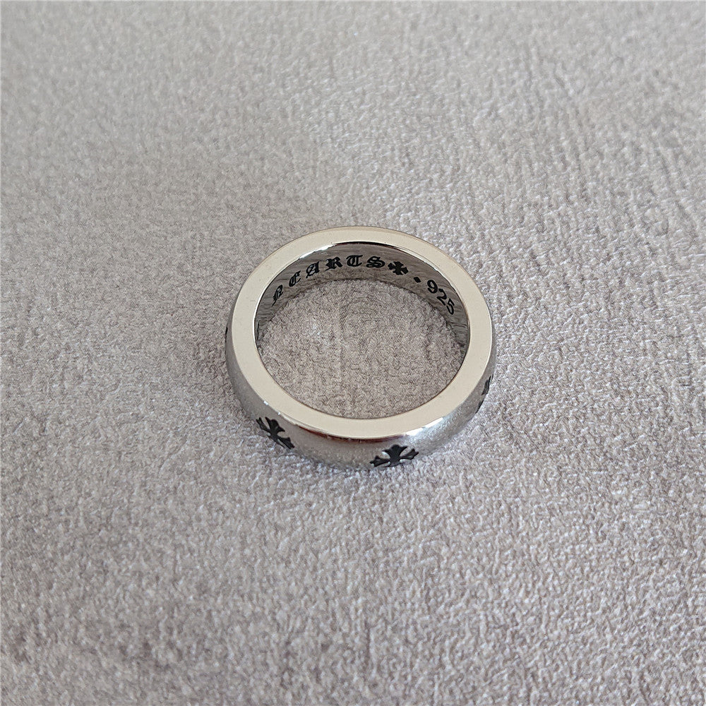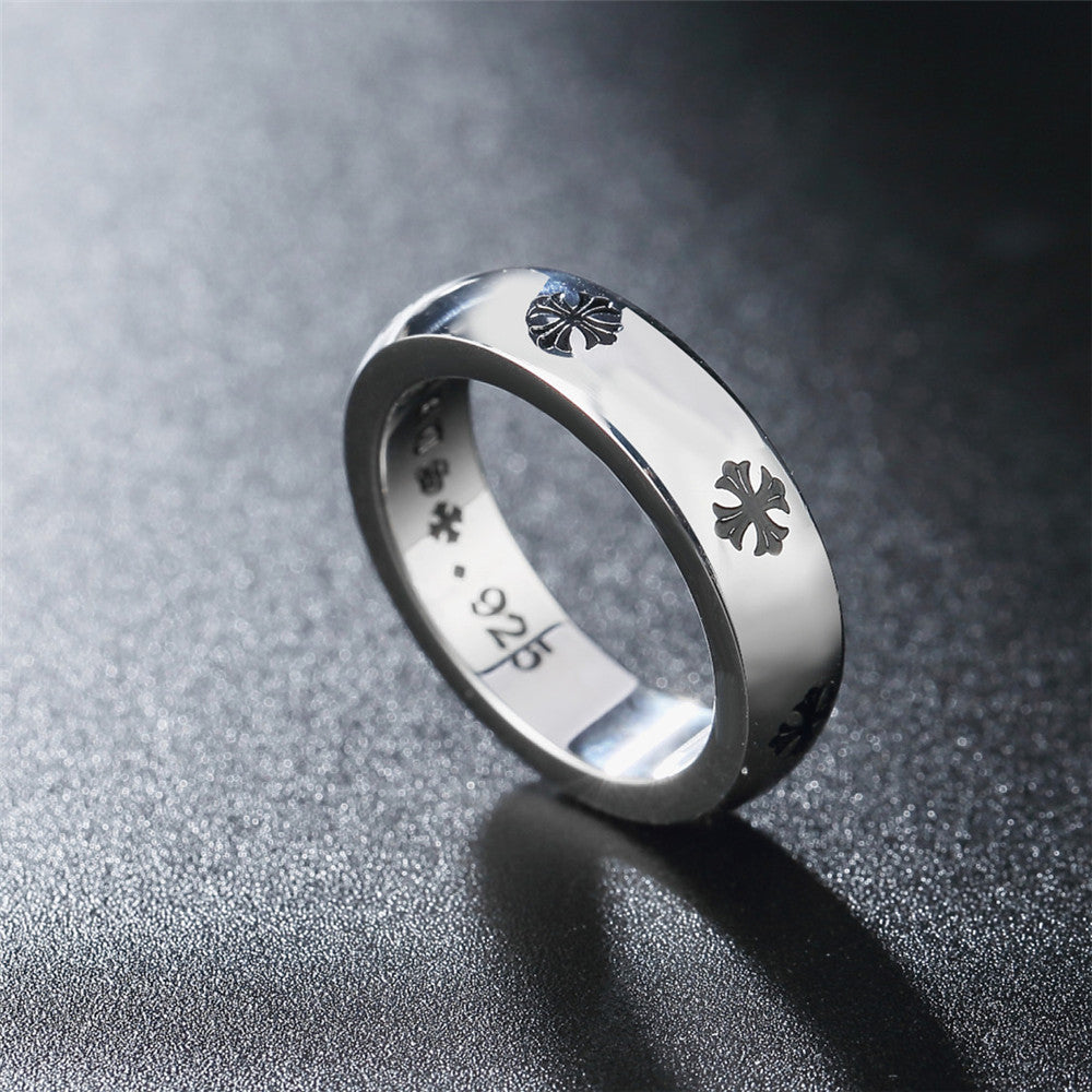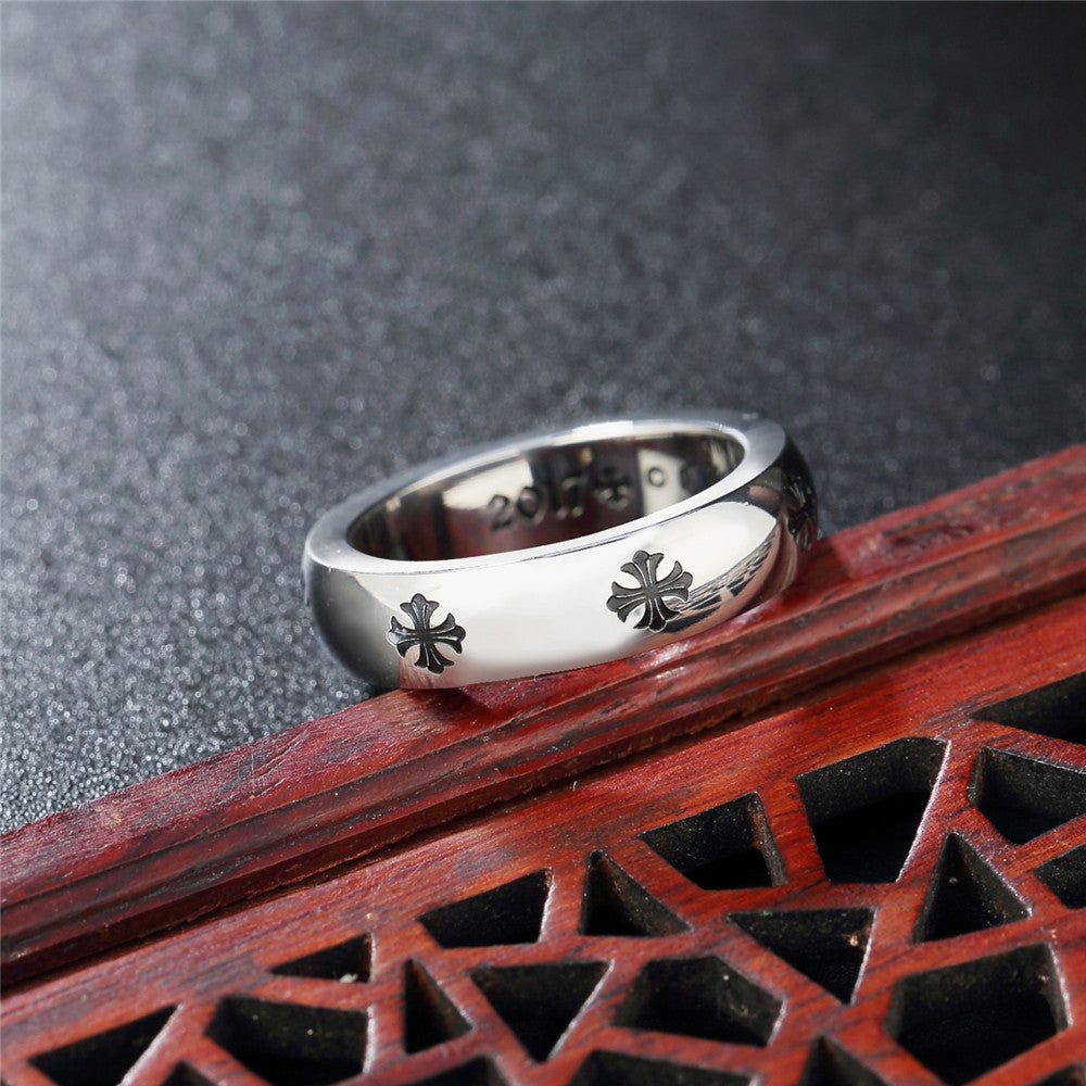 Simple Cross Flower Pattern Titanium Steel Ring for Men