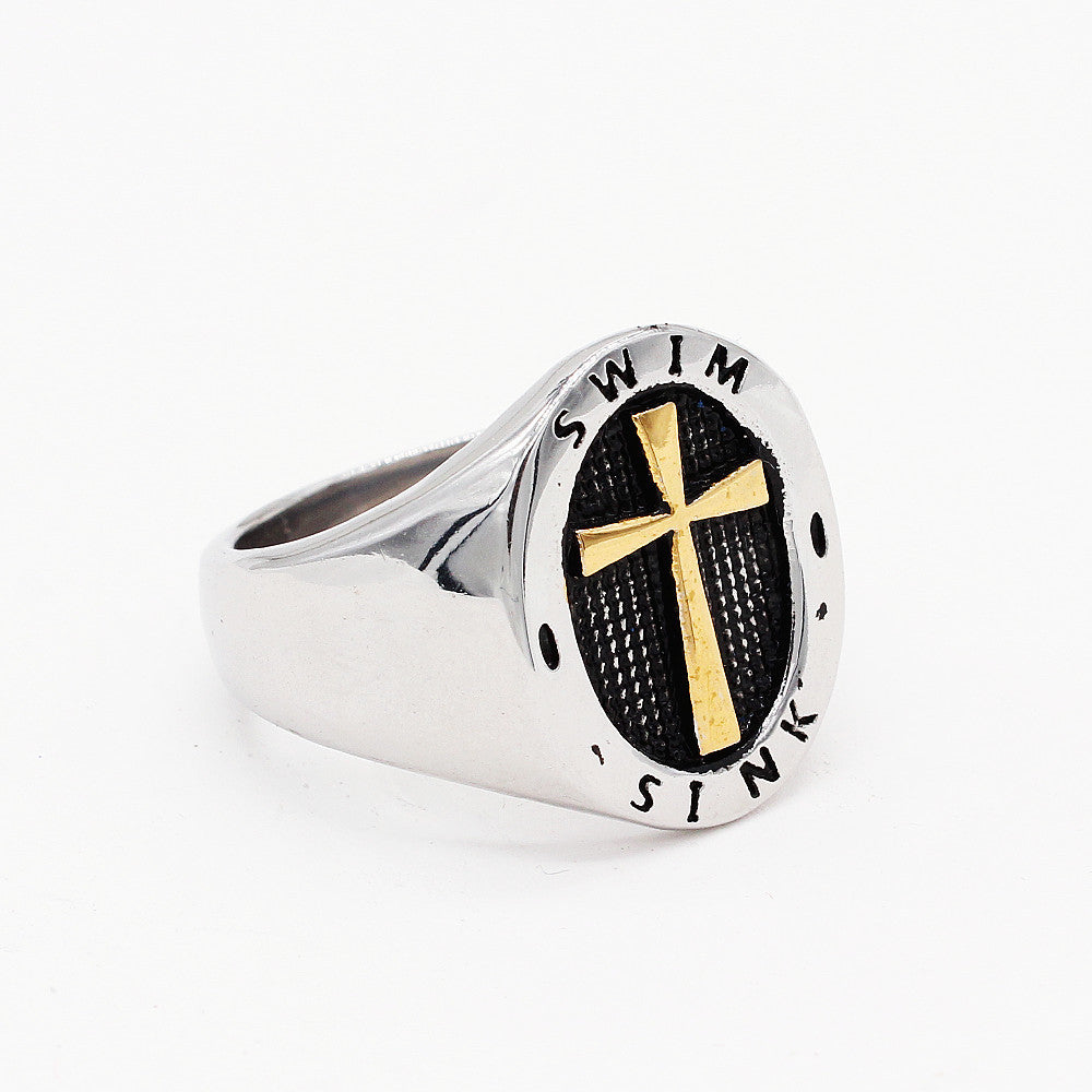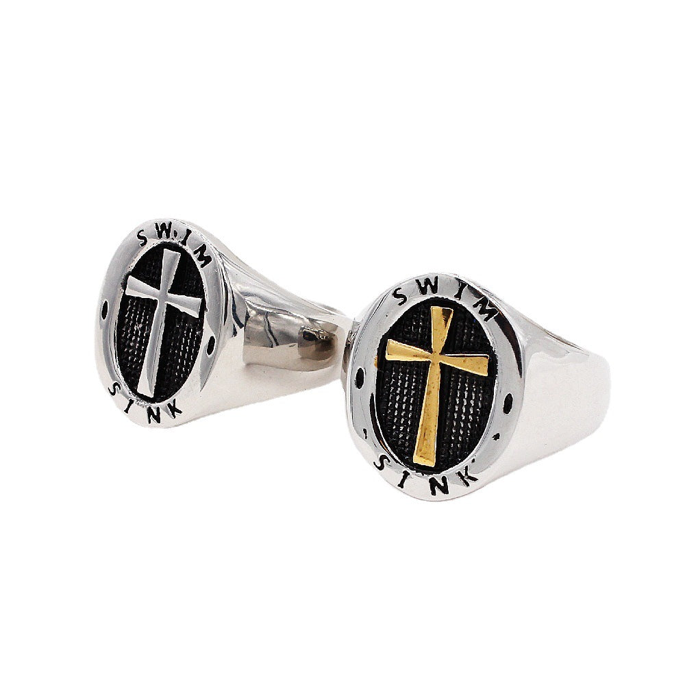 Latin Cross Oval Polished Titanium Steel Ring for Men