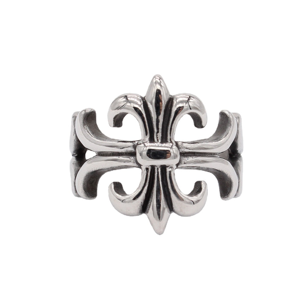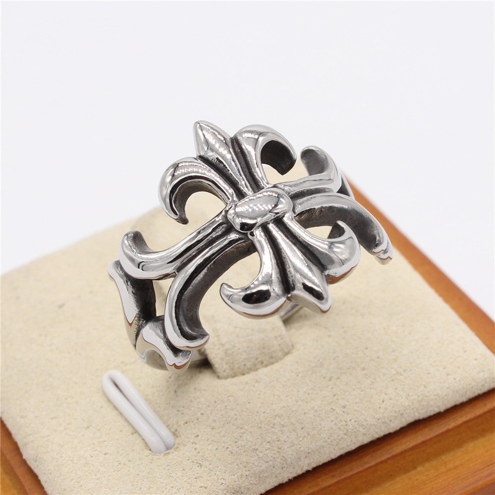 Hollow Polished Cross Flower Titanium Steel Ring for Men