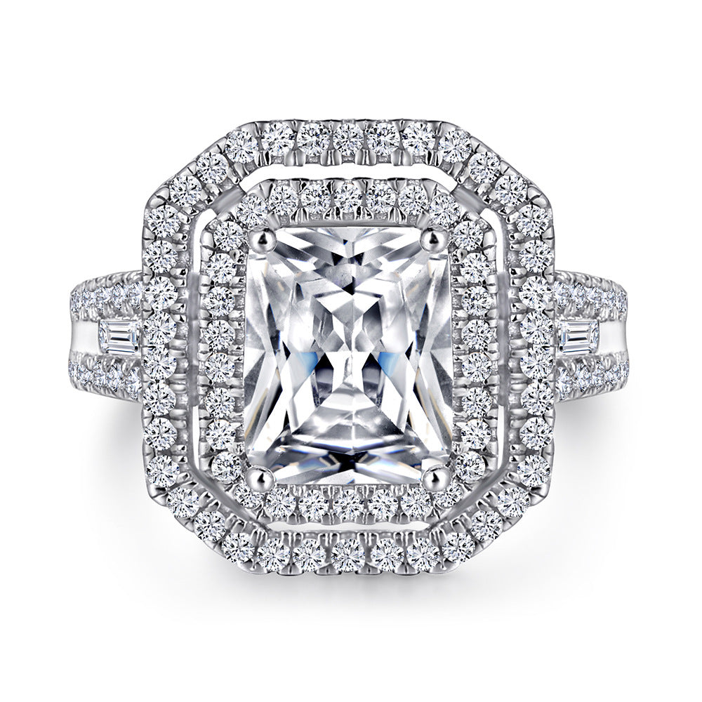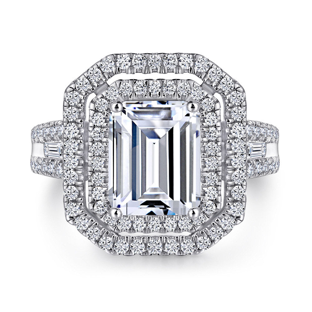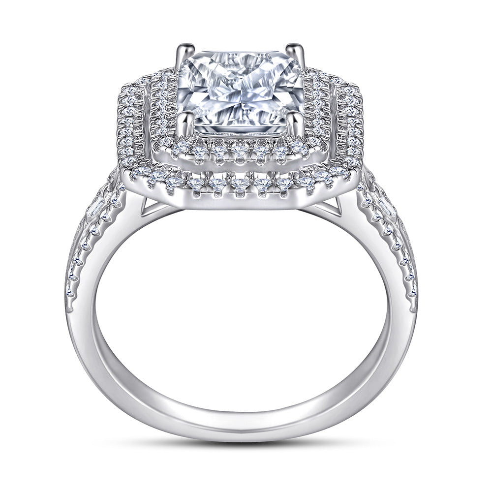 Rectangle Zircon Double Soleste Halo Silver Ring for