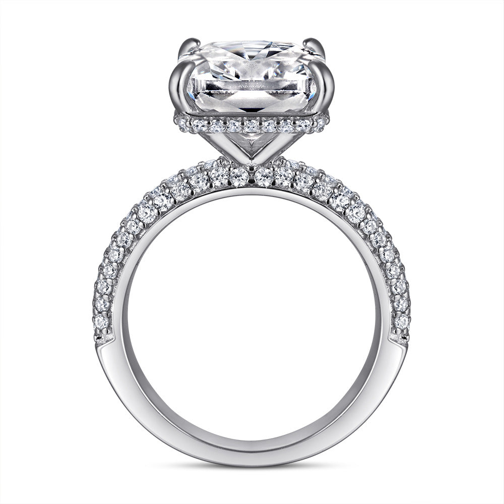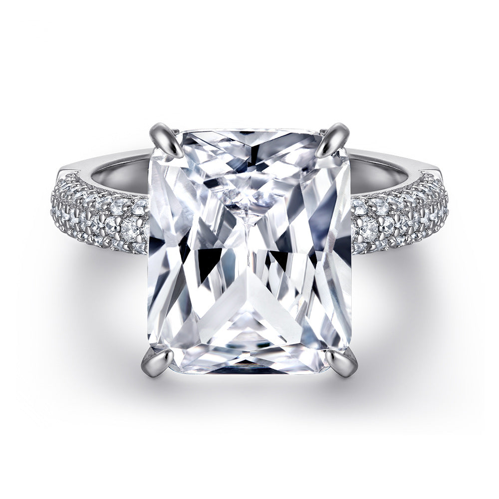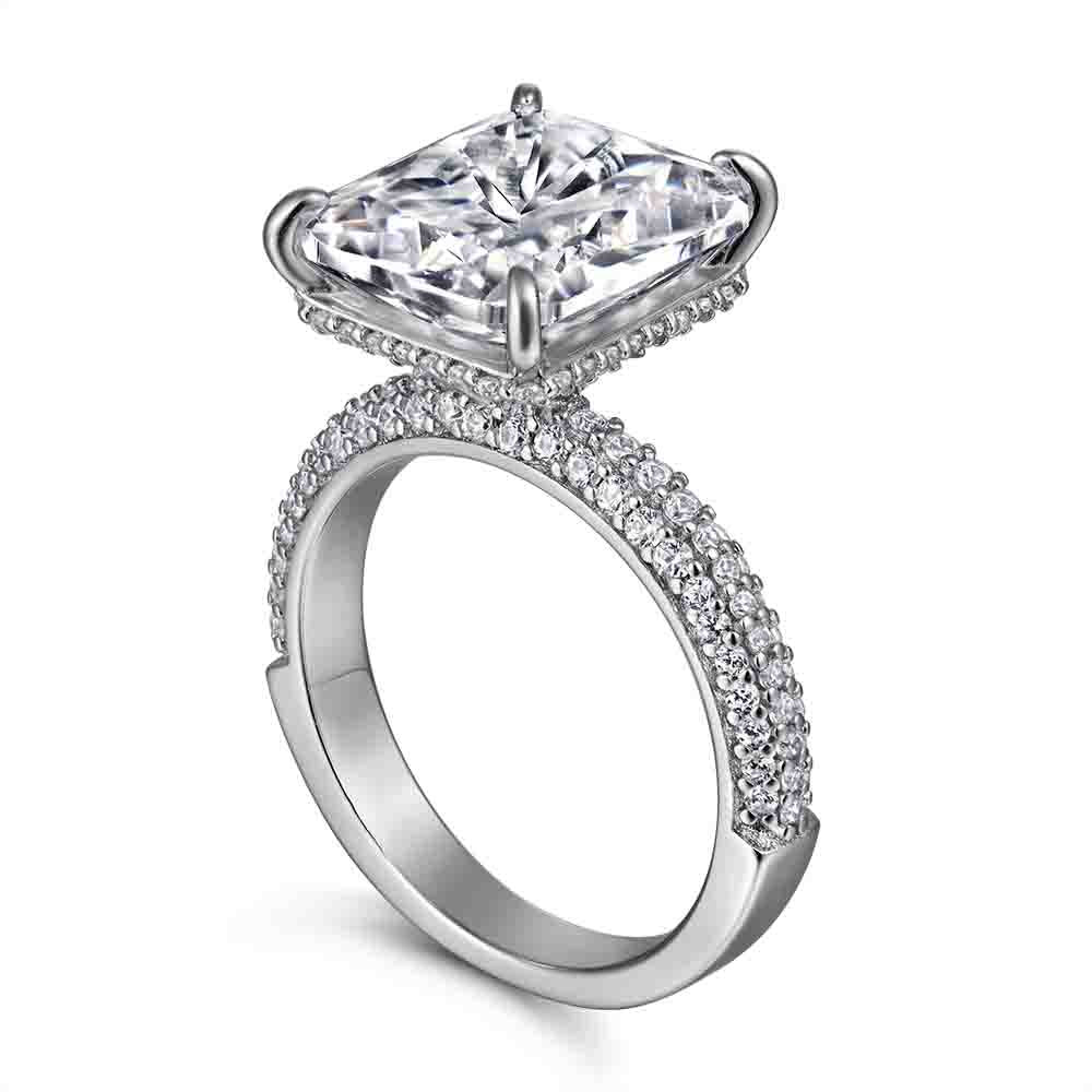 Radiant Cut Zircon Four Prongs Solitaire Silver Ring