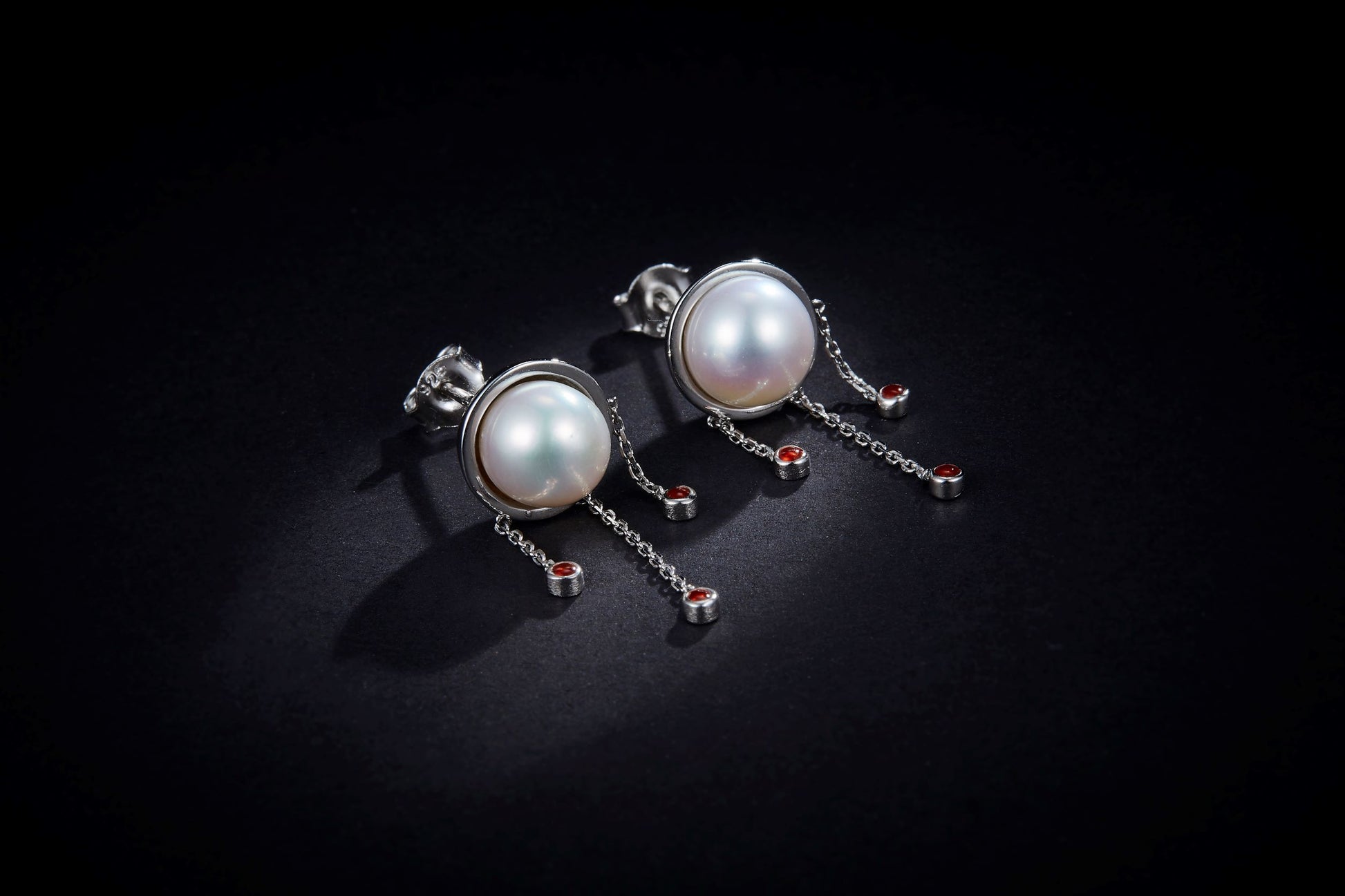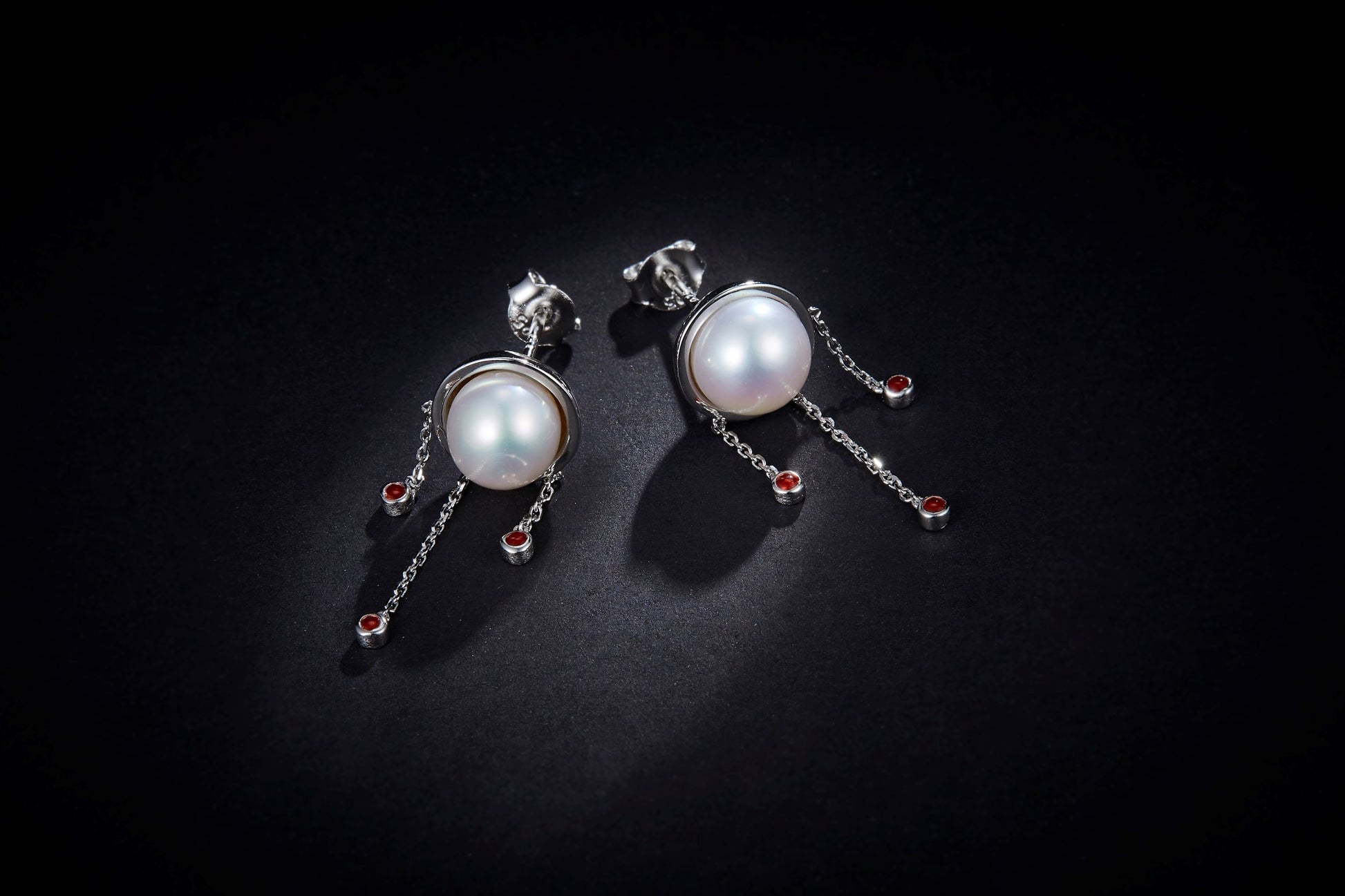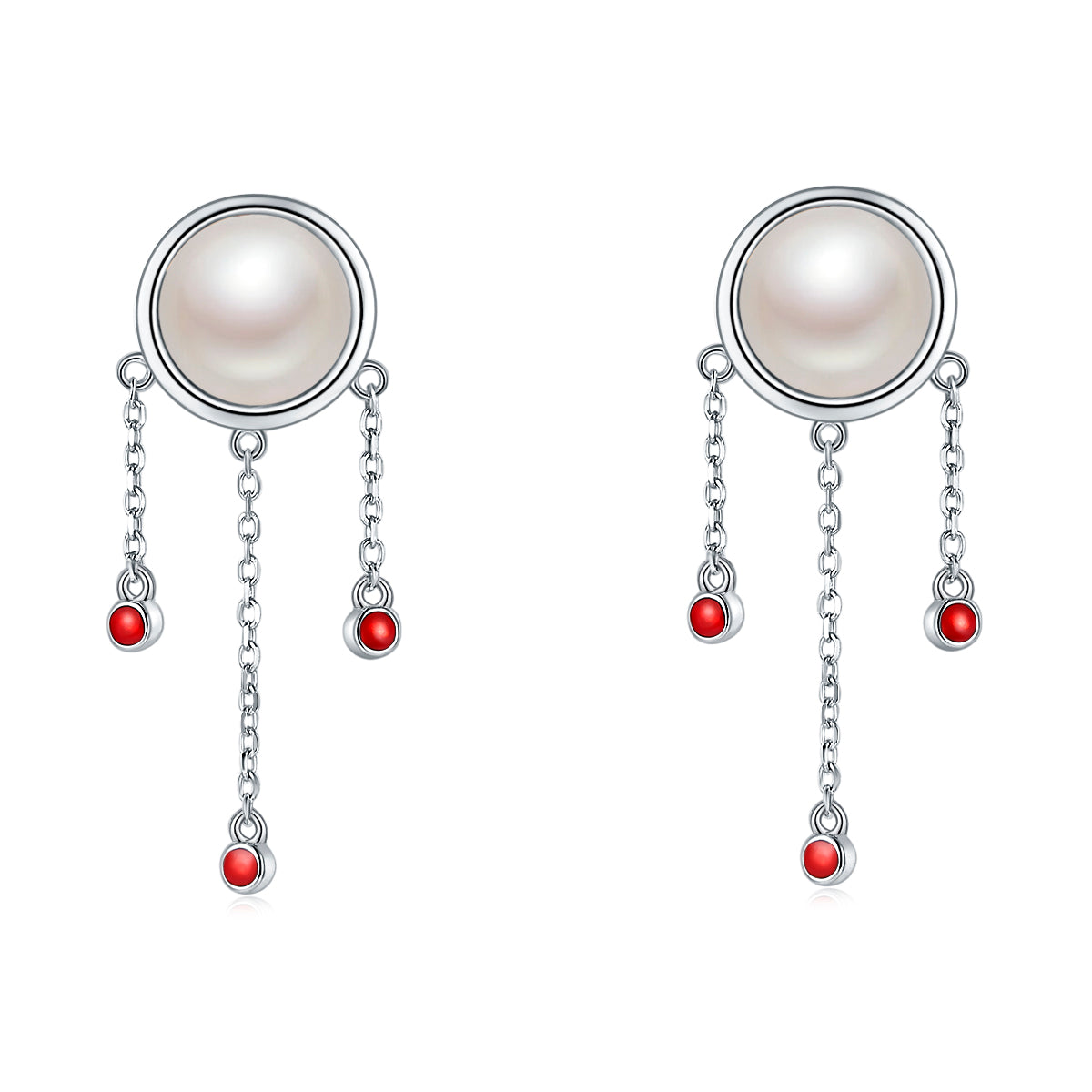 This Rattle Drum Pearl Tassels Enamel Silver Drop Earrings create a unique and stylish look with their enamel and pearl detailing. The eye-catching combination of sterling silver, enamel and pearl gives a modern, sophisticated touch to any ensemble.