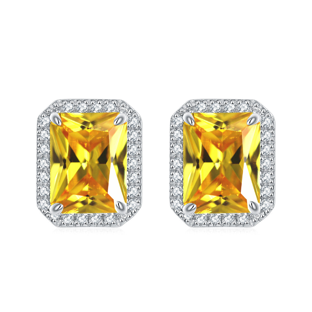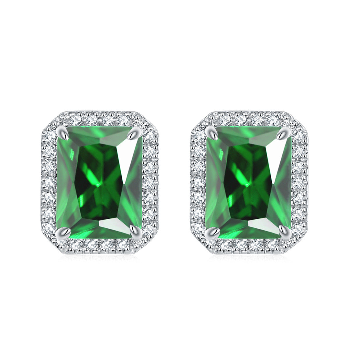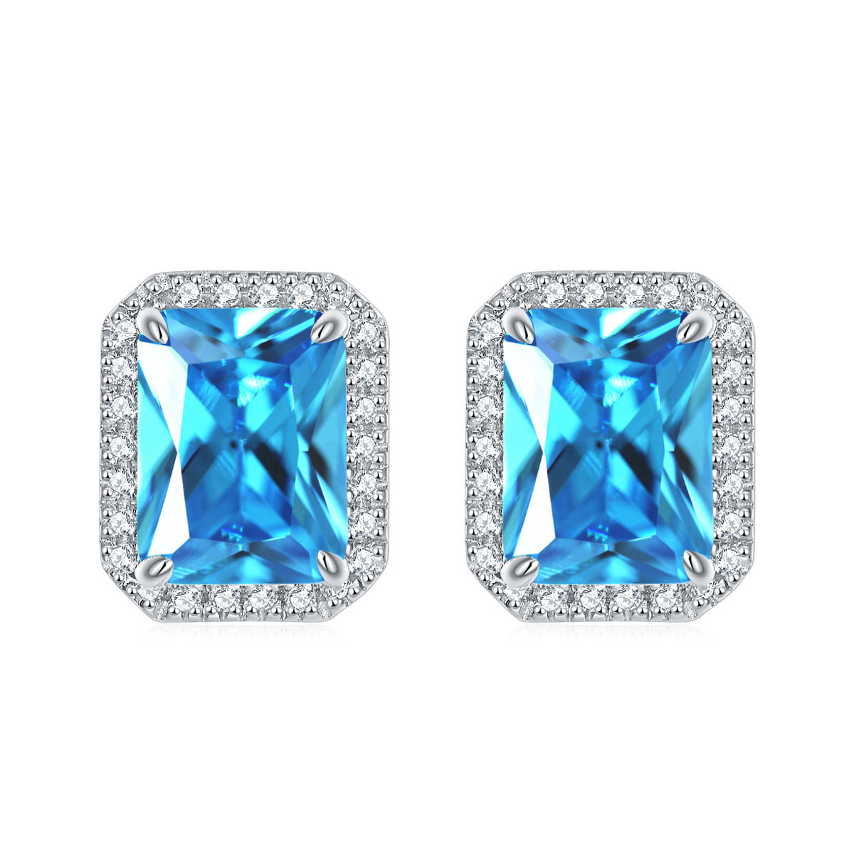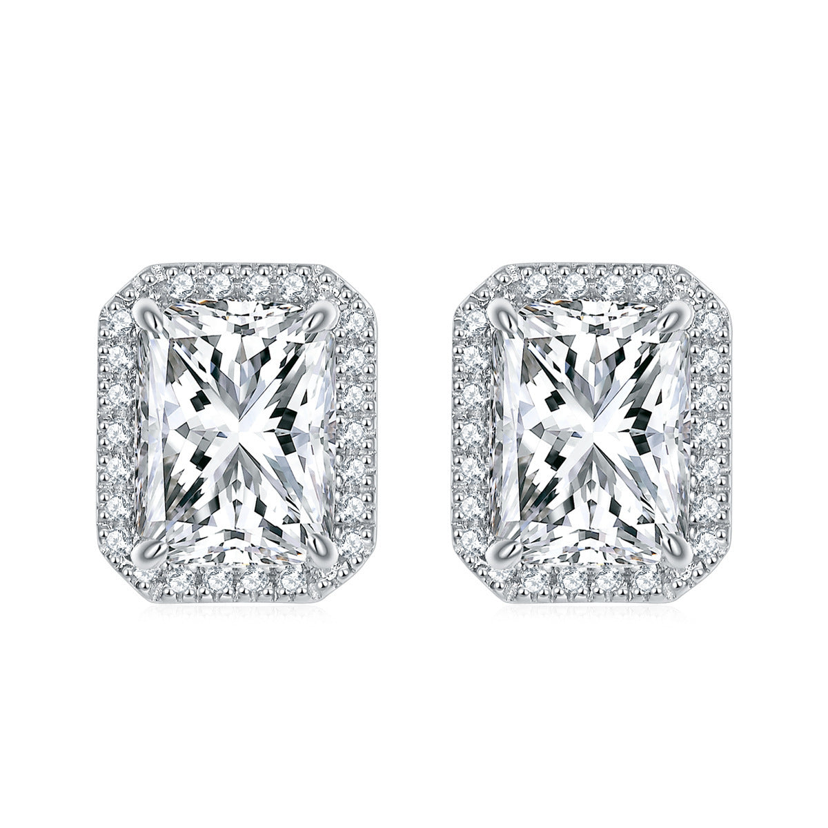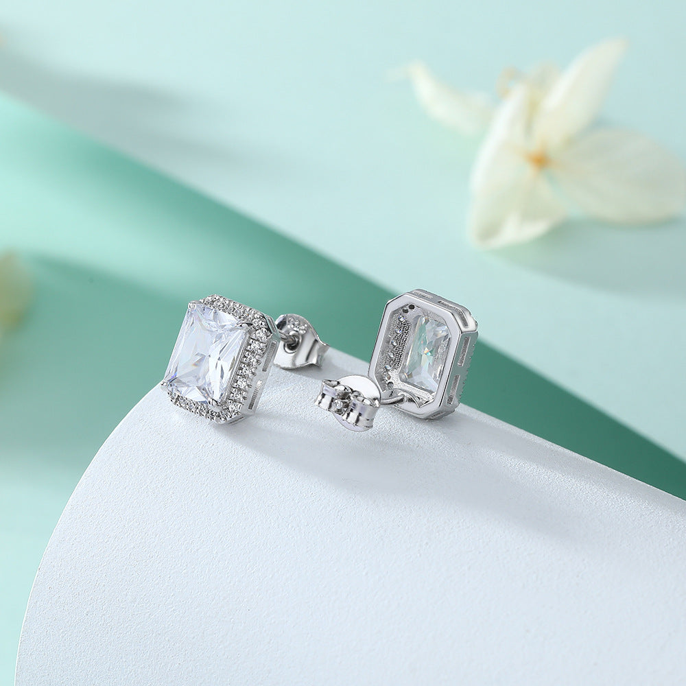 Rectangular Zircon Solesta Halo Silver Studs Earrings for Women