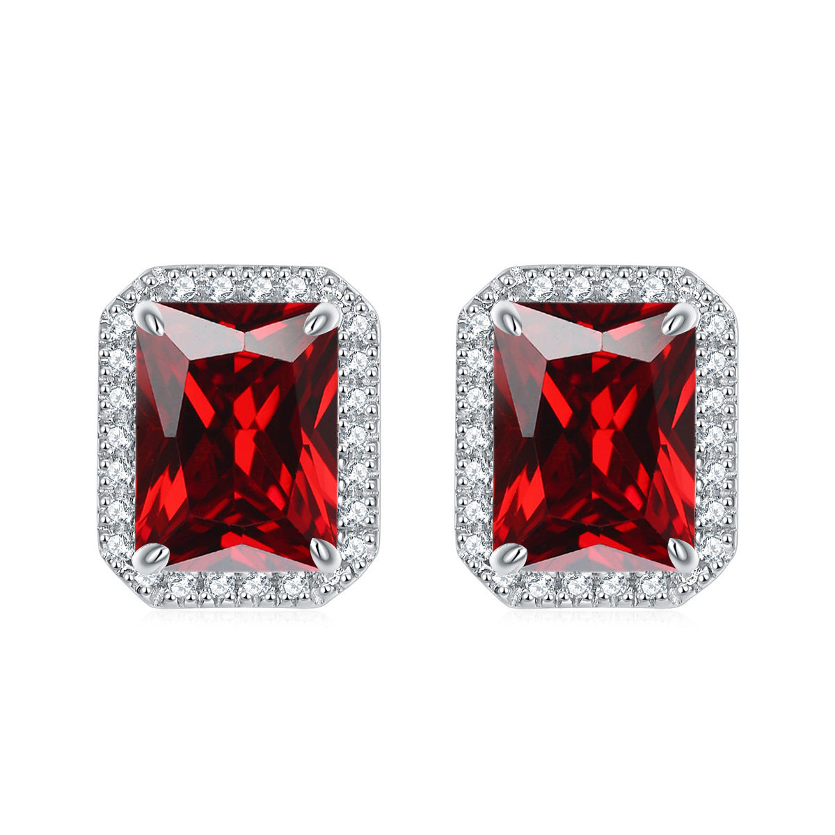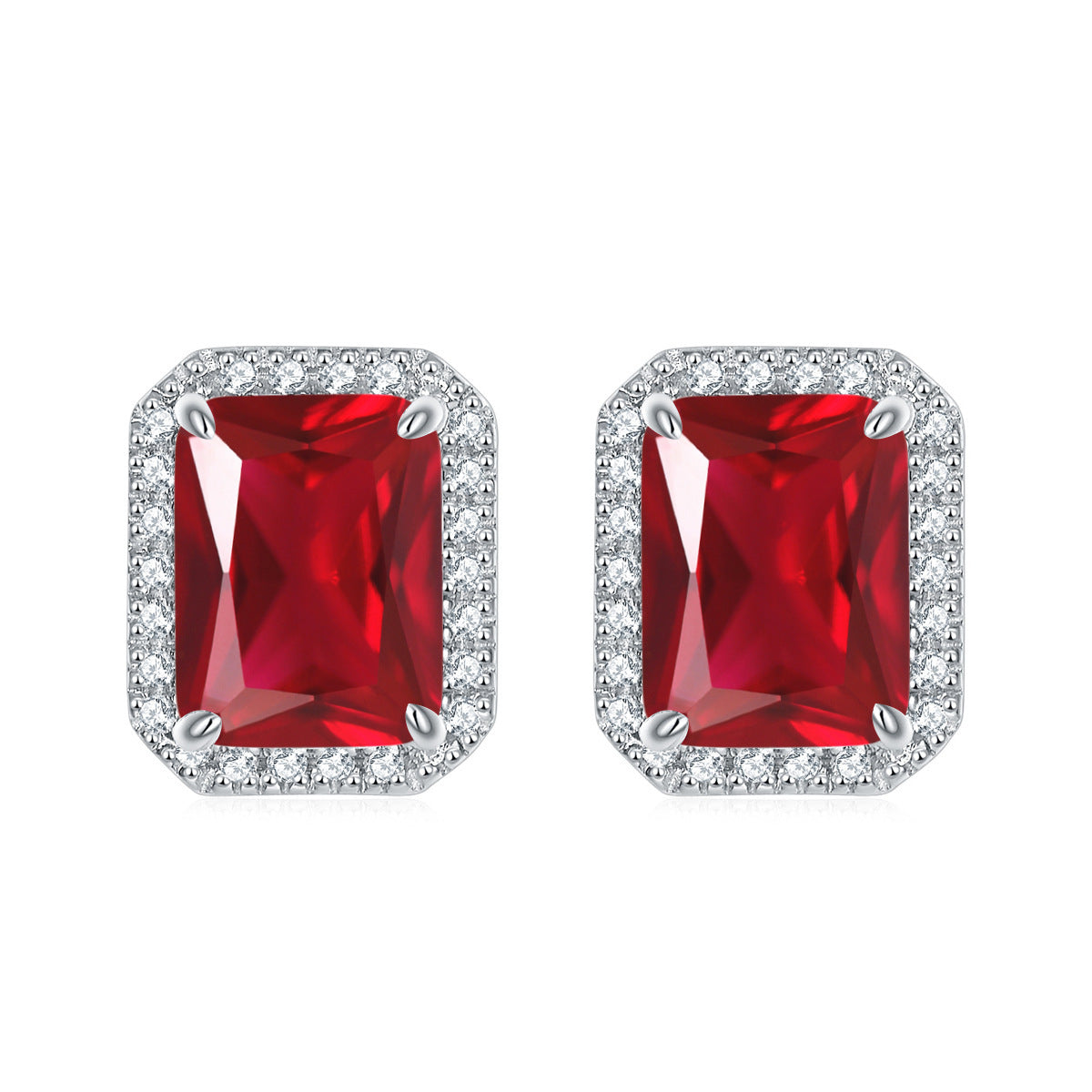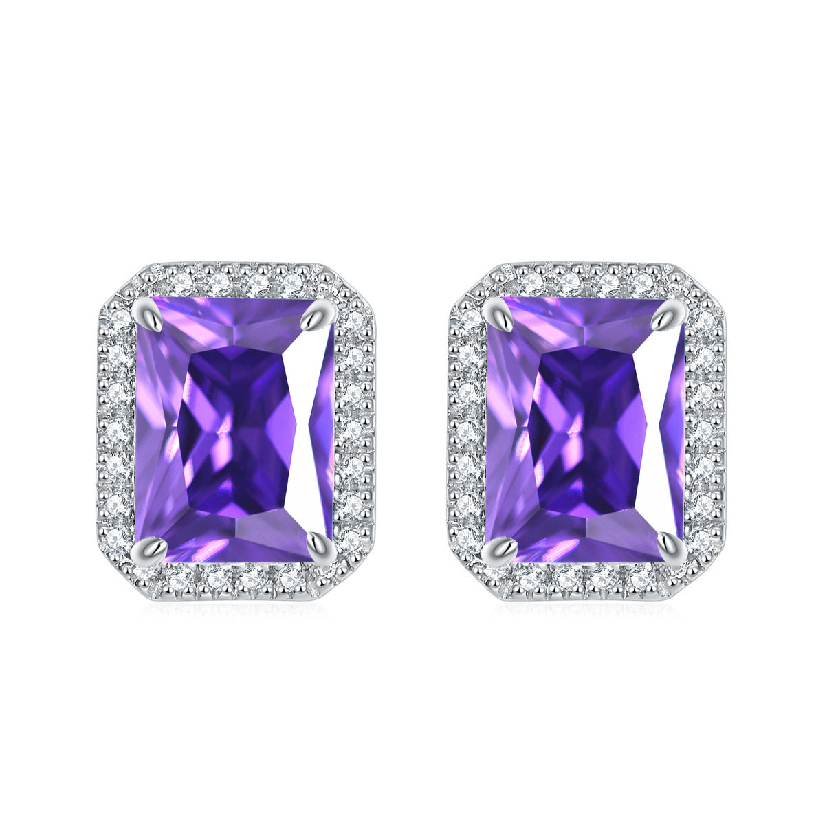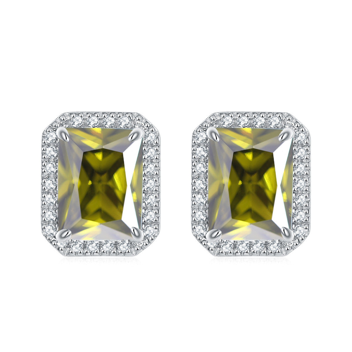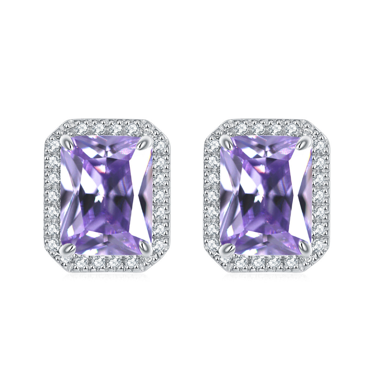 Rectangular Zircon Solesta Halo Silver Studs Earrings for Women