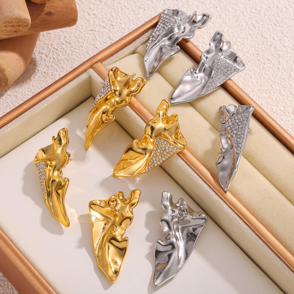 Step into the spotlight with our Retro personality niche geometric pleated texture wing shape earrings. Elevate your style with the perfect fusion of vintage charm and contemporary flair.