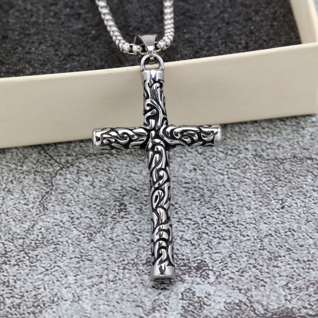 Retro stainless steel cross pendant designed for both men and women. This double-sided engraved necklace blends a timeless cross motif with durable steel to elevate everyday style.
