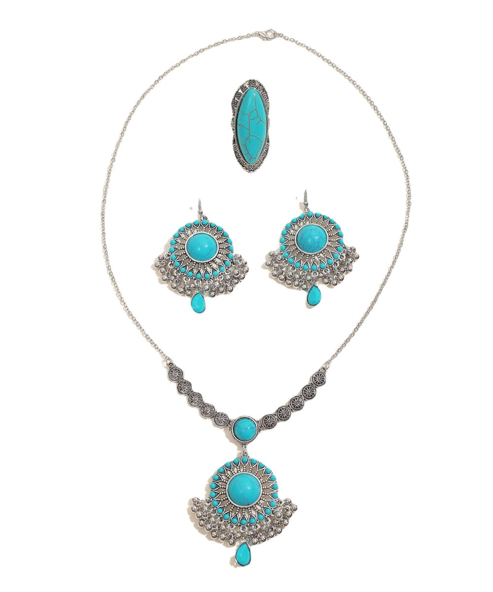 Middle Eastern Turquoise Trio Necklace Set - Savanna Rhythms Collection