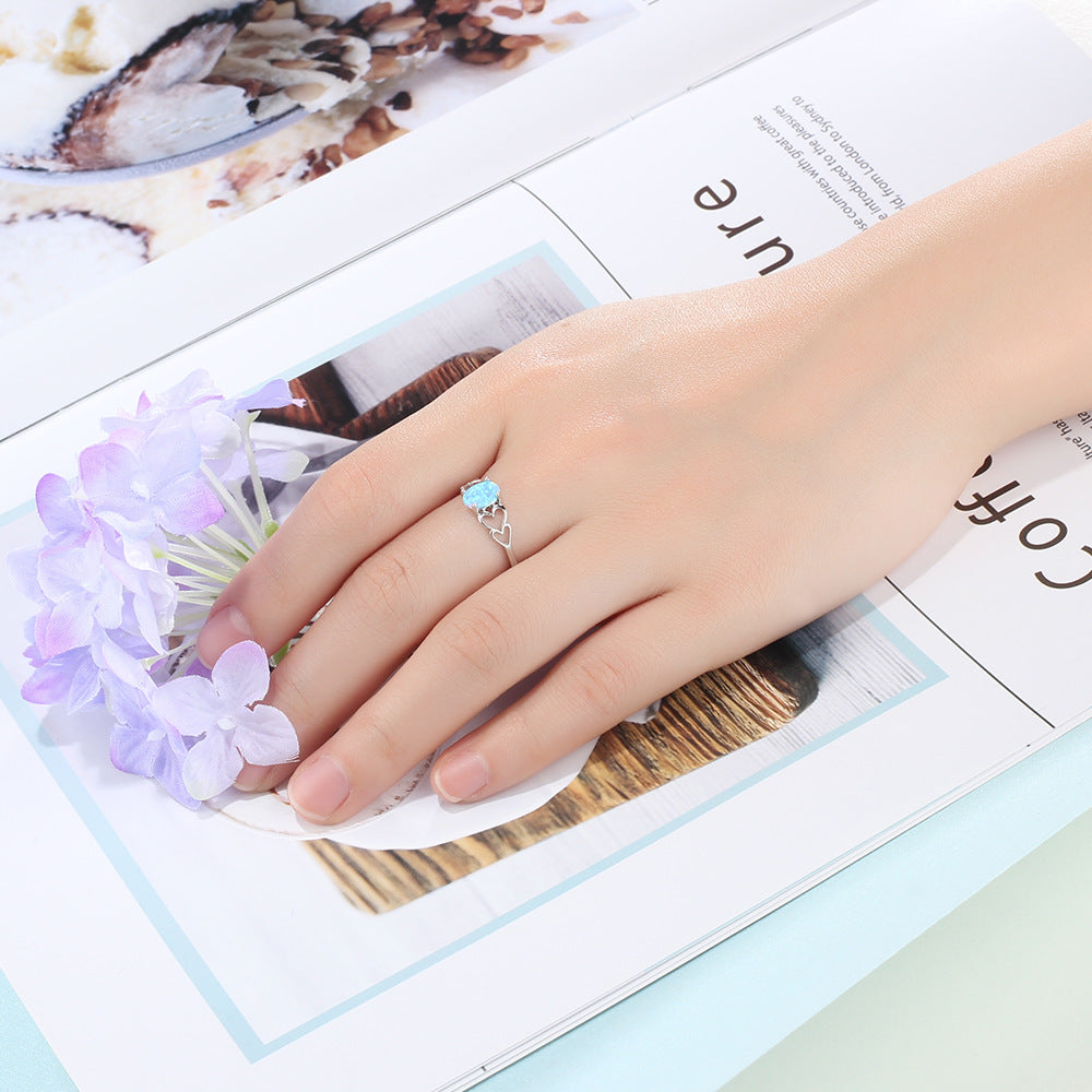 Oval Opal Hollow Heart Shape Sterling Silver Ring