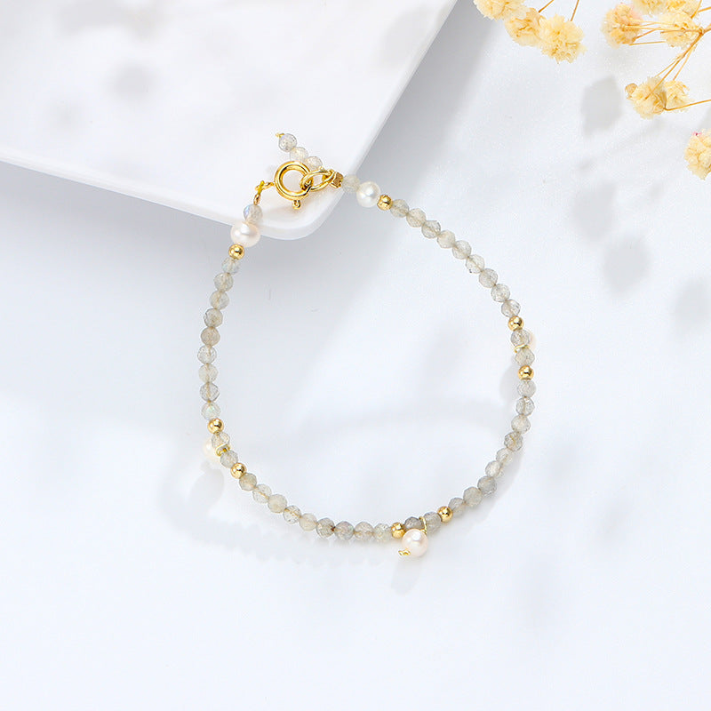 Discover the epitome of elegance with our Lavender Amethyst Grey Moonlight Faceted Pearl Bracelet. This exquisite piece from the Planderful Fortune's Favor Collection features: