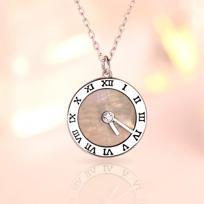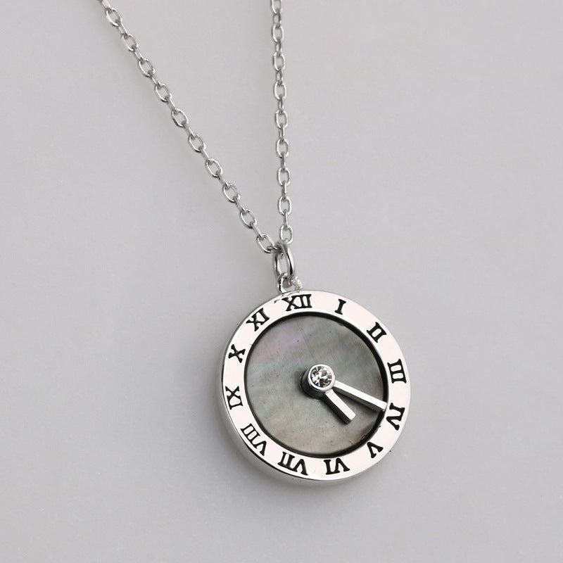 Roman Digital Clock Pendant Silver Necklace for Women