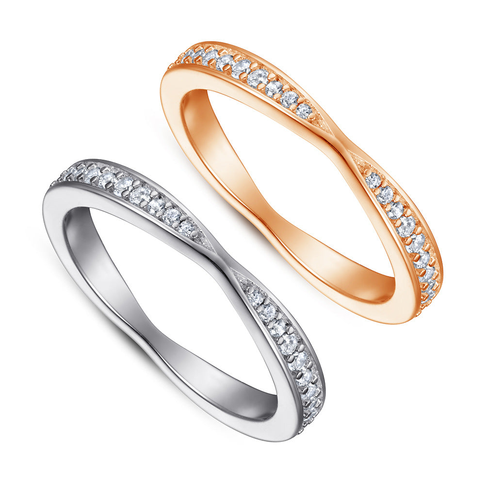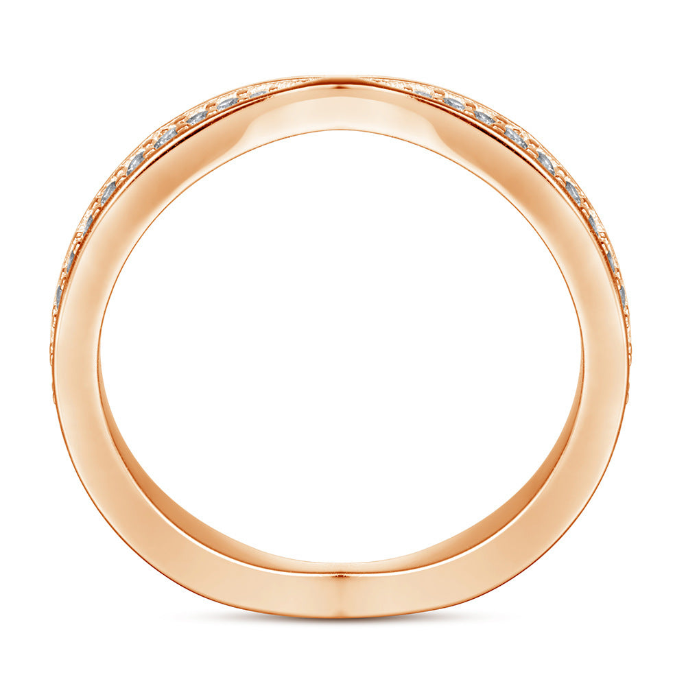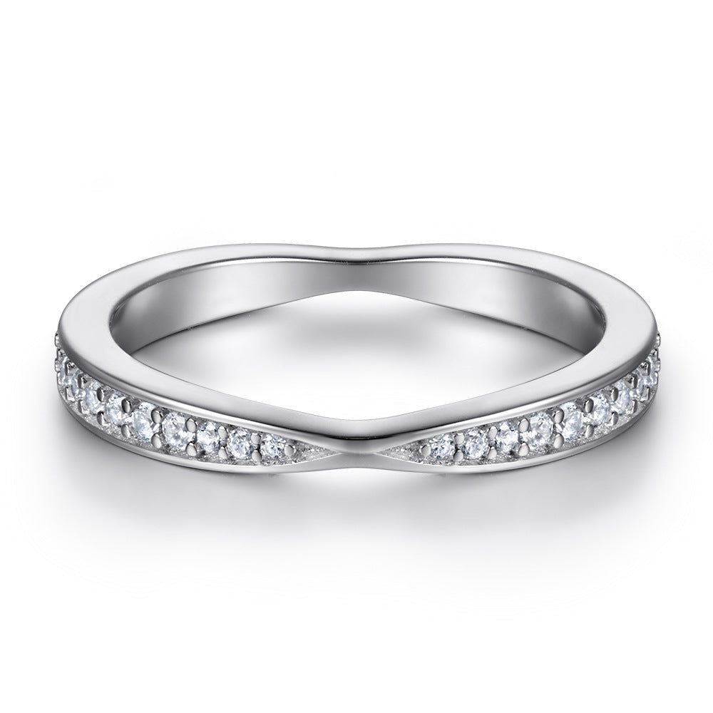 This elegant Round Zircon Cross Design Eternity Silver Ring is a sophisticated piece that will instantly elevate any look. It features a crossover design eternity ring adorned with a row of small round zircons. This stunning ring is sure to add a touch of sparkle and glamour.