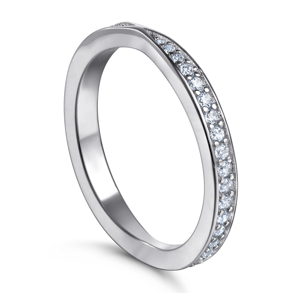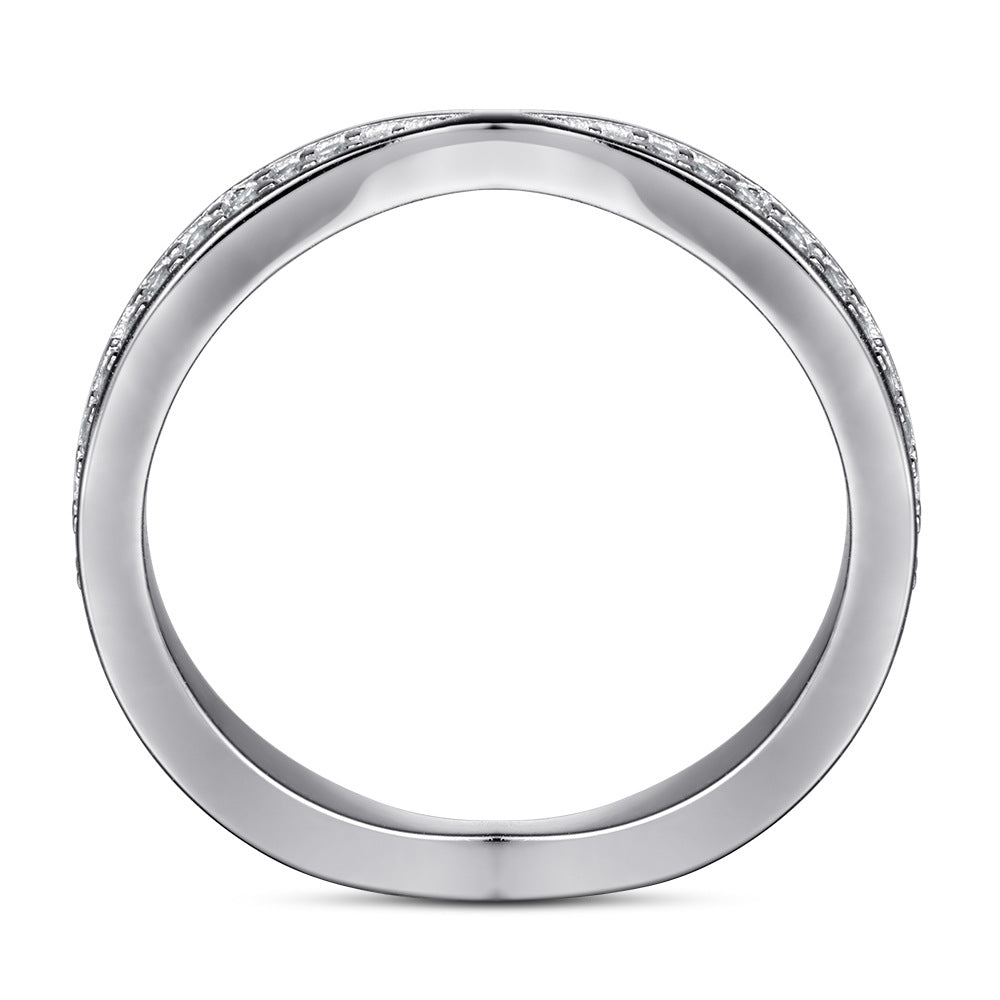 Round Zircon Cross Design Eternity Silver Ring