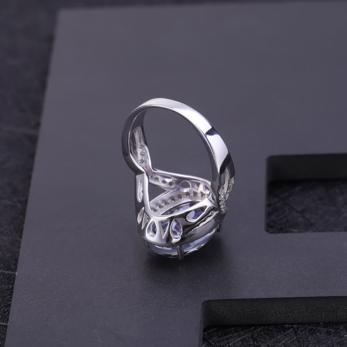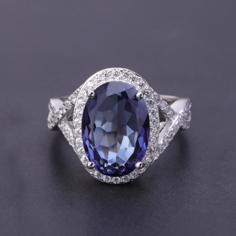 Oval Soleste Halo Modern Split Shank Silver Ring for Women