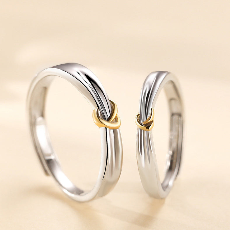 This Love Knot Silver Couple Ring is crafted in sterling silver to give you a classic and timeless look. Its gold colour cross Knot design adds a stylish touch while creating an eye-catching statement. The perfect complement to any style, it is sure to make you stand out.