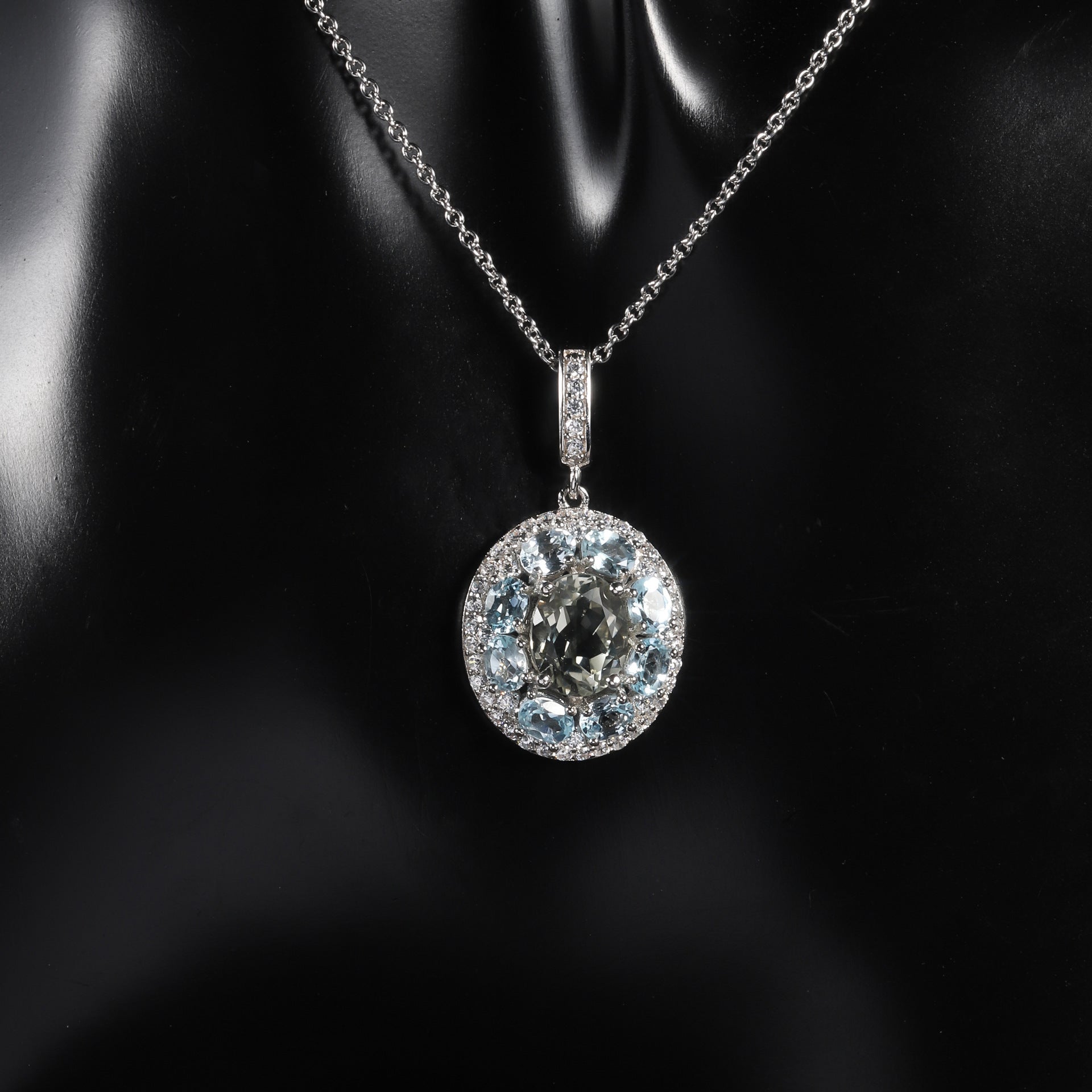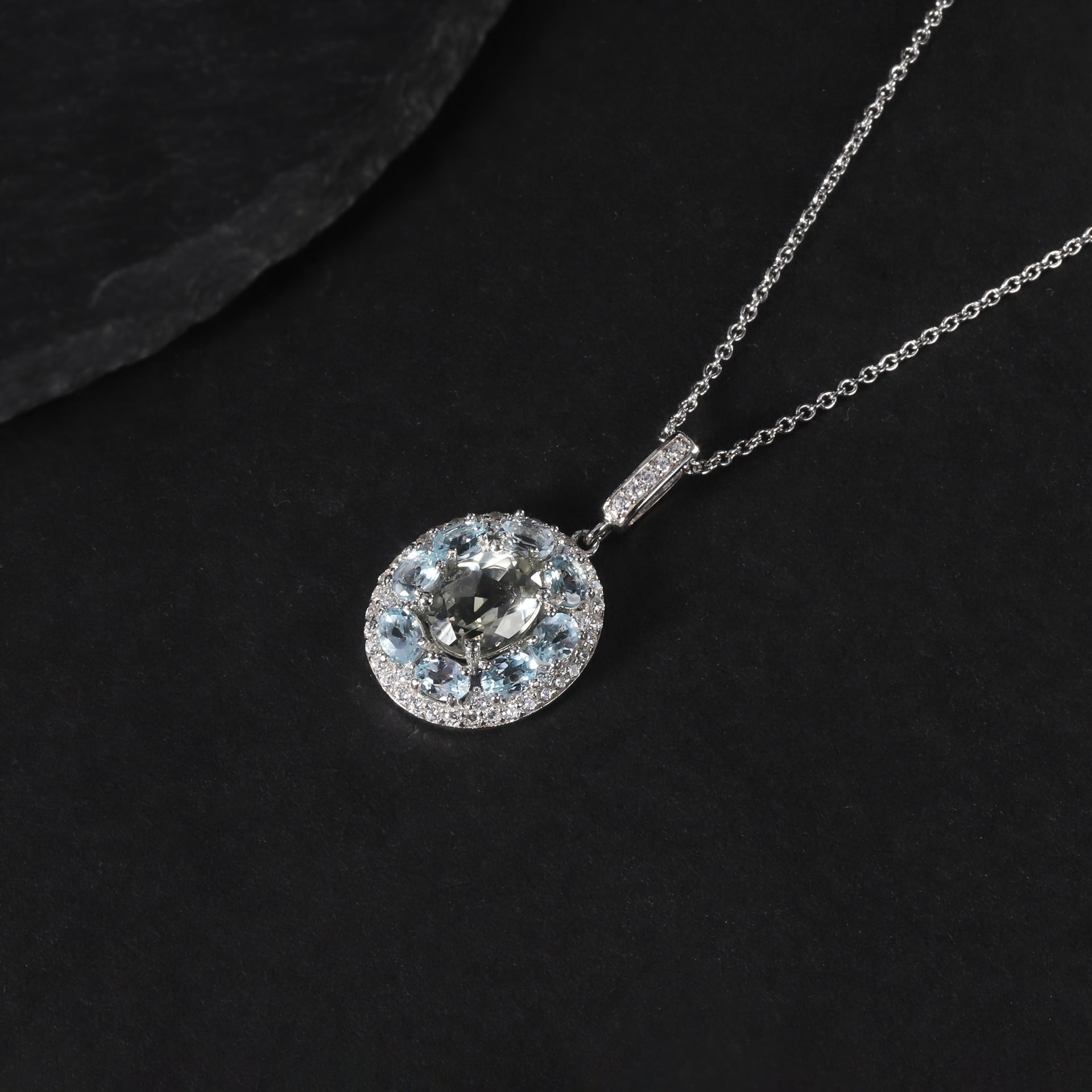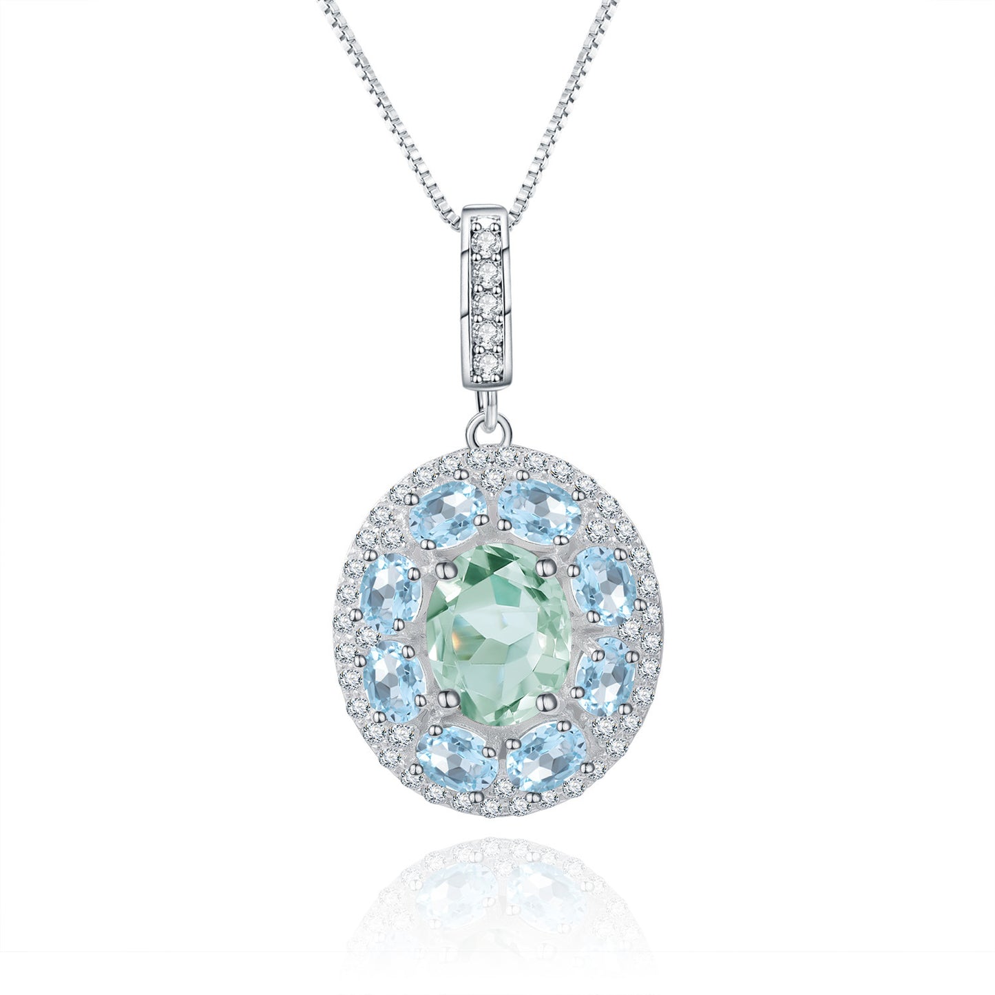 Light Luxury Premium Fashion Style Inlaid Natural Colourful Gemstone Soleste Halo Oval Pendant Silver Necklace for Women