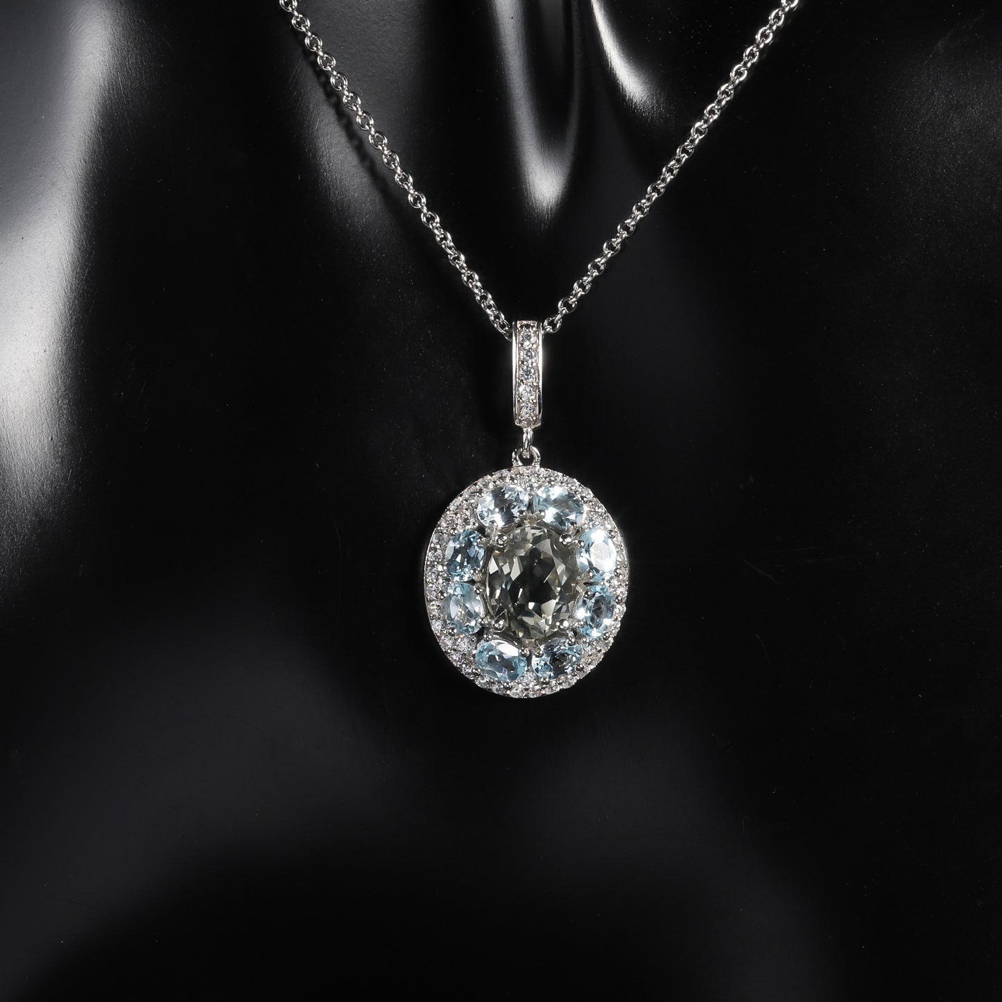 This remarkable Light Luxury Premium Fashion Style Inlaid Natural Colourful Gemstone Soleste Halo Oval Pendant Silver Necklace for Women is a stunning piece of jewelry. Crafted with a natural oval gemstone pendant and a soleste halo, this necklace is perfect for adding a touch of luxury to any outfit.