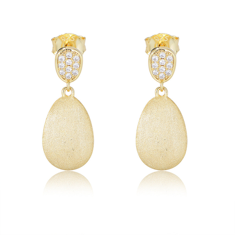 Matte Geometric Oval with Zircon Silver Drop Earrings for Women