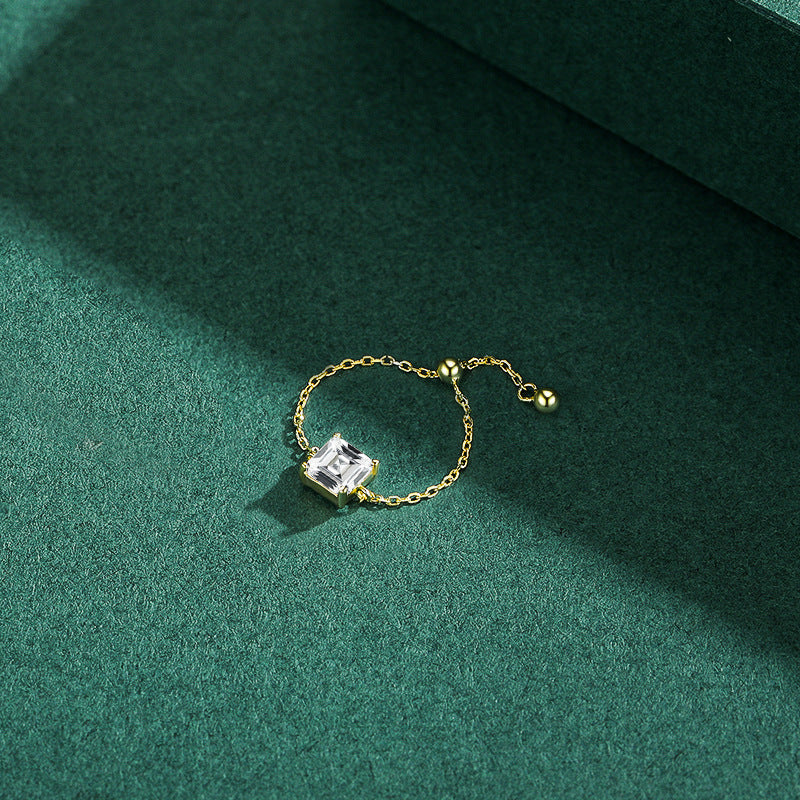 Introducing our S925 Silver New Original Simple Square Zircon Ring, inspired by Japanese and Korean femininity, adorned with a chain for a touch of elegance. This adjustable ring is a stunning piece of jewelry that effortlessly enhances any look.