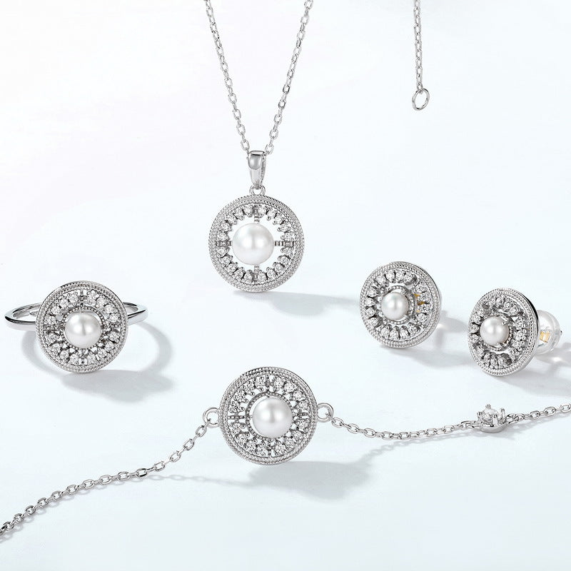 Zircon Disc Round Natural Freshwater Pearl Sterling Silver Stud Earrings