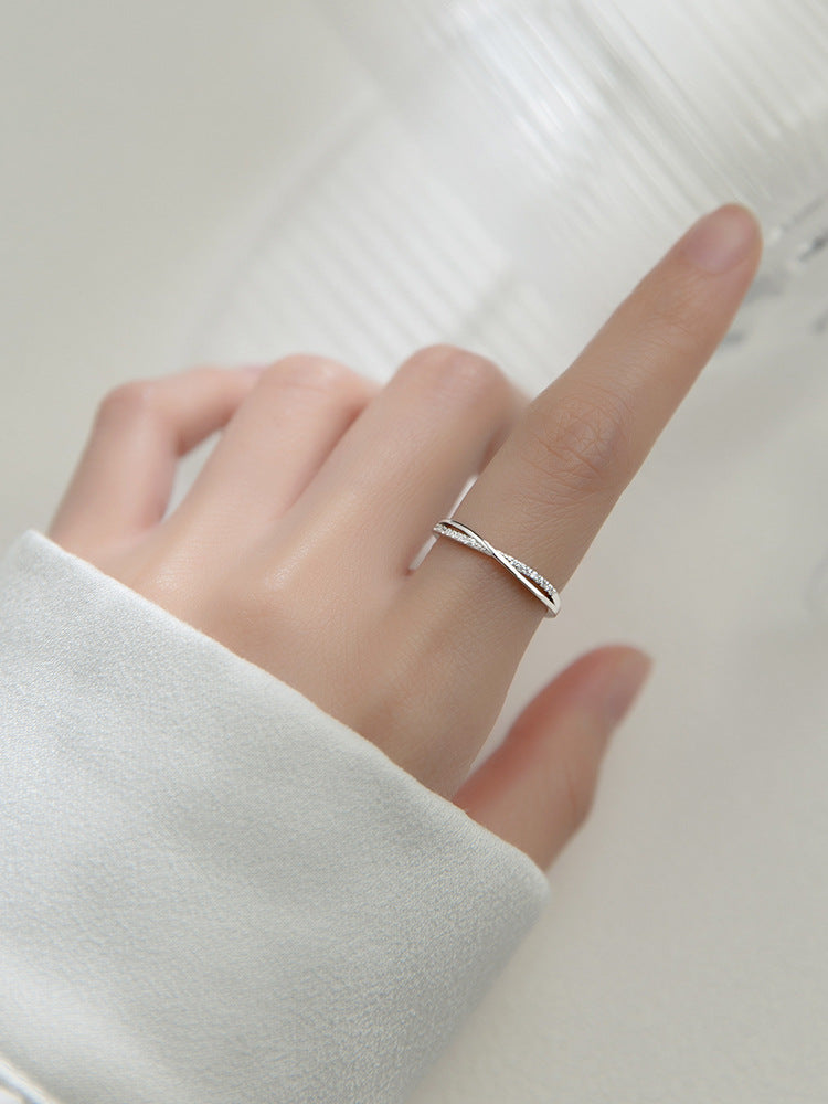 Interweave Stripe with Row Zircon Silver Ring for Women