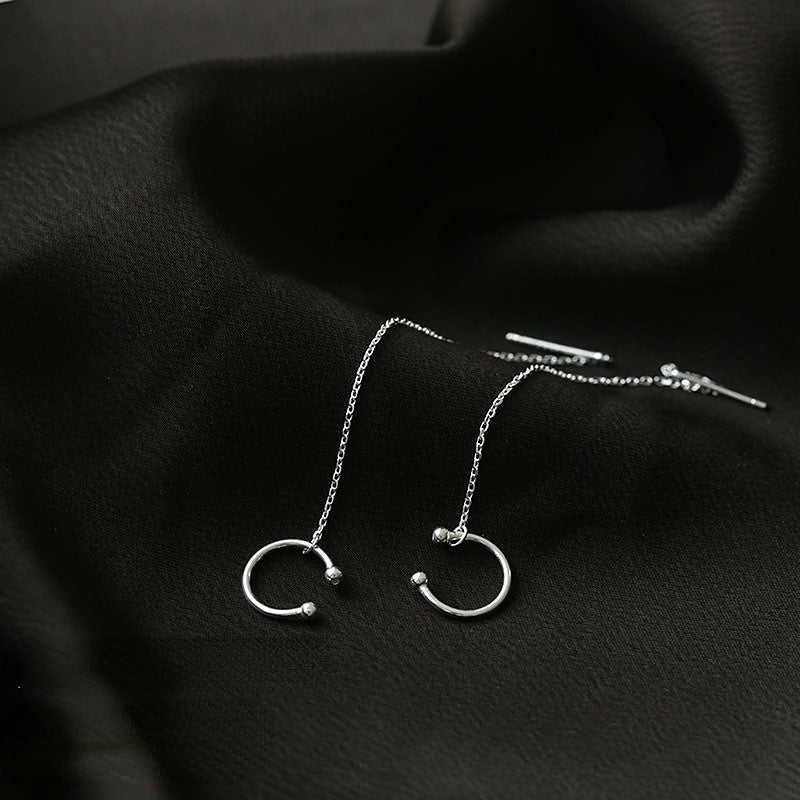 Two Wearing Long Tassle Ear Clip Silver Drop Earrings for Women