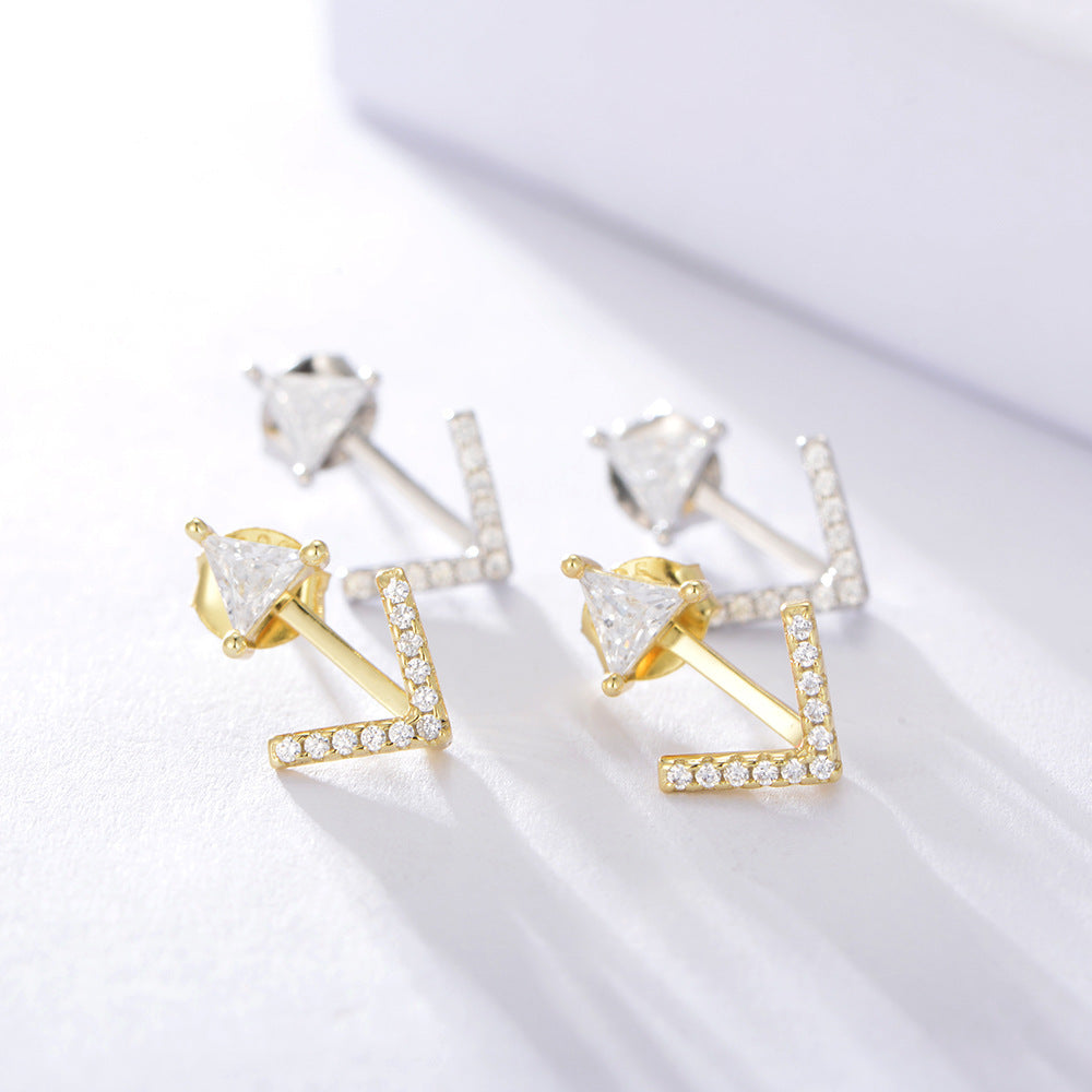 Back Hanging Triangle Arrow Silver Studs Earrings for Women