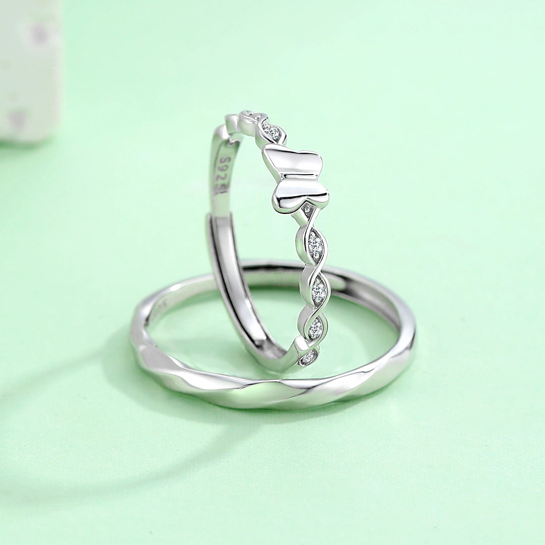 Discover the S925 sterling silver butterfly love couple rings from Planderful, a matching duo crafted for couples and ideal for gifting your girlfriend. This pair embodies delicate charm and everyday elegance in a timeless design.