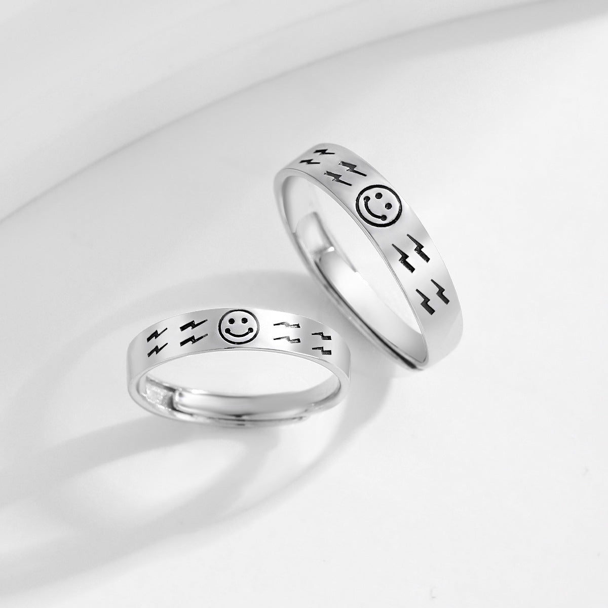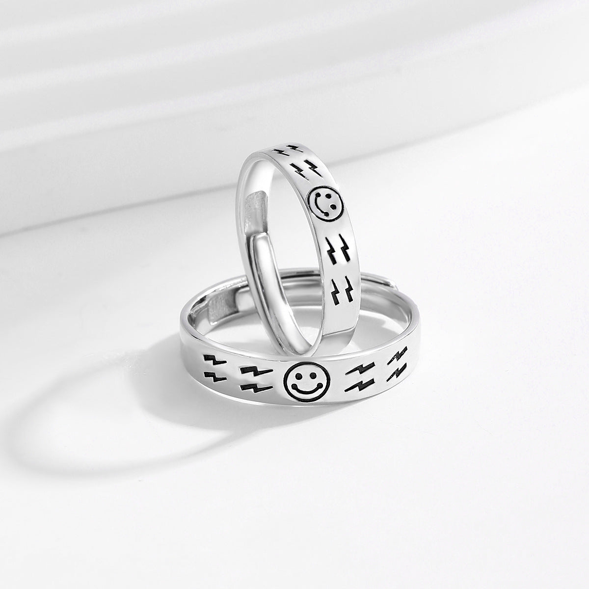 Planderful Everyday Genie – S925 Sterling Silver Couple Ring with Korean Smiley Face Design