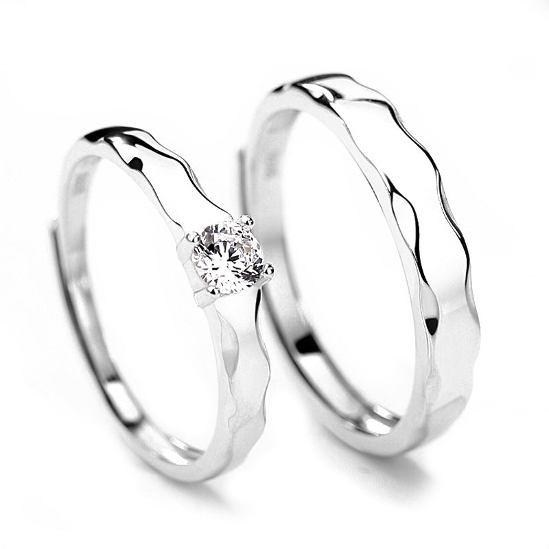 This stylish Wave Design with Zircon Silver Couple Ring is an adjustable ring, featuring a wave design around the edge and one ring with an embedded round zircon for an elegant look. Perfect for couples looking for a beautiful ring to signify their commitment.
