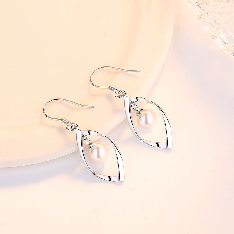 This Marquise Shape with Pearl Silver Drop Earrings for Women feature an eye-catching hollow Marquise Shape pendant with an pearl to create an elegant, graceful look. Crafted in sterling silver, this earrings is perfect for any evening ensemble.