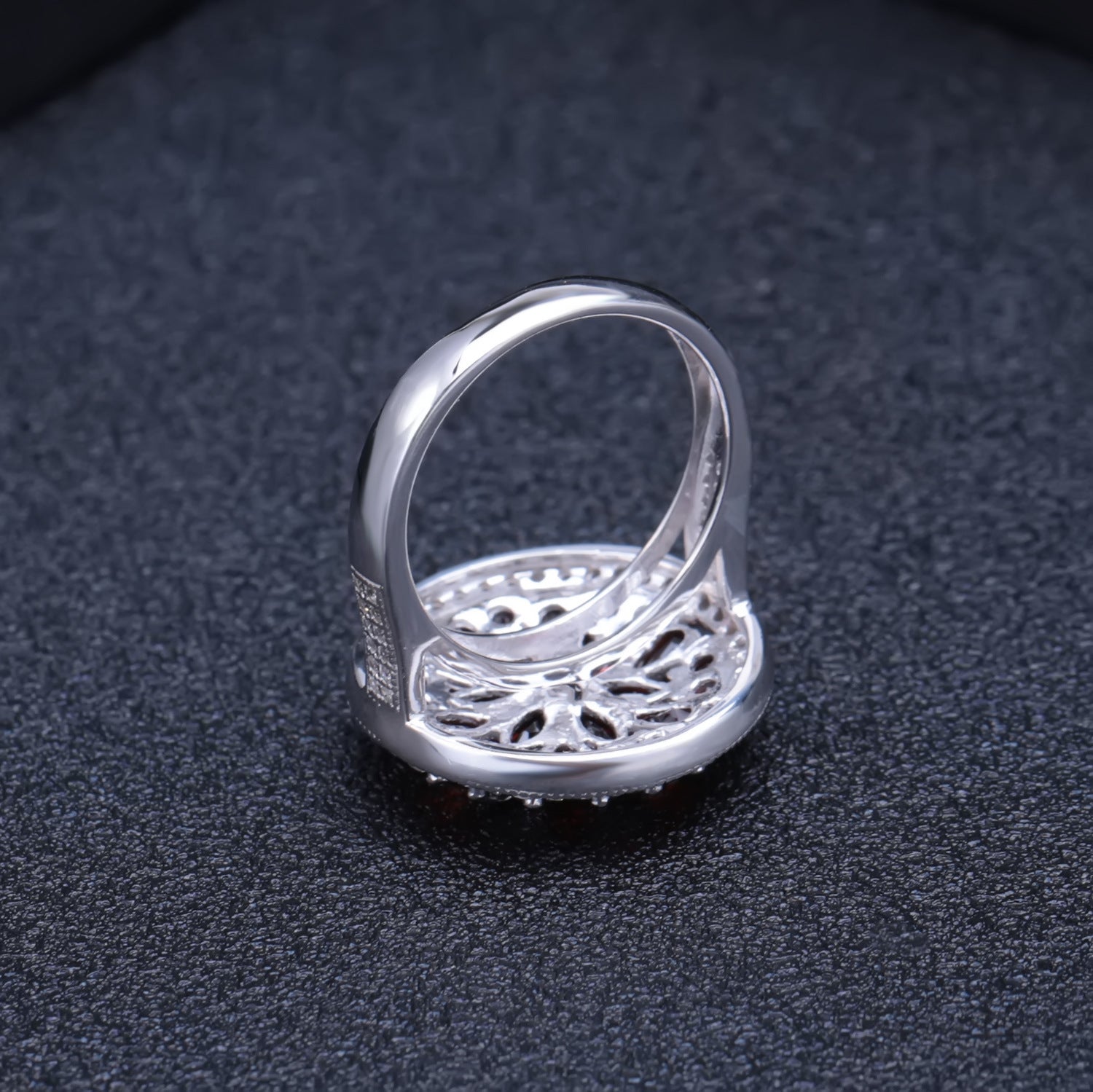 European Natural Gemstones Circle Sterling Silver Ring for Women