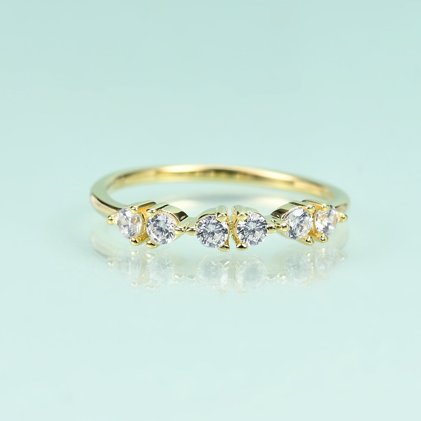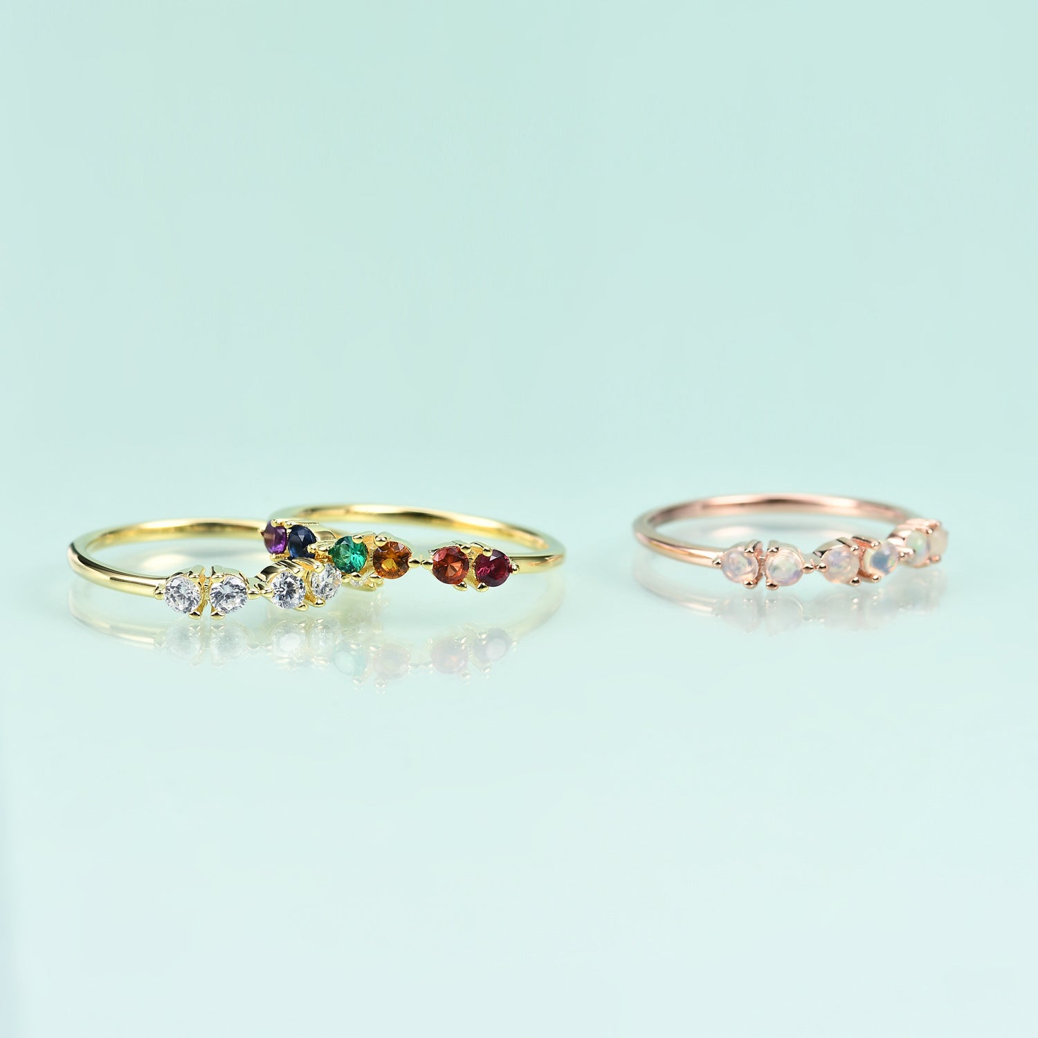 Fashionable 14k Gold Plated on S925 Sterling Silver Inlaid Color Gemstone Row Ring for Women