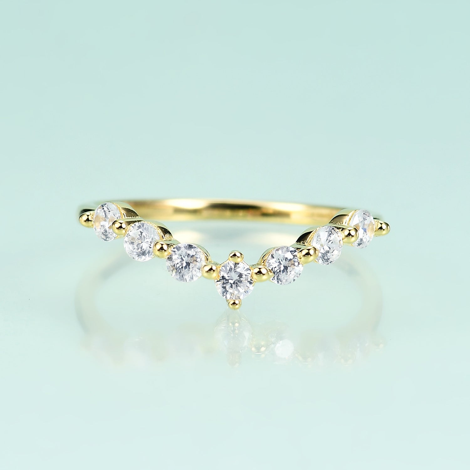 Row of Zircon V-shaped S925 Sterling Silver Plating 14k Gold Ring