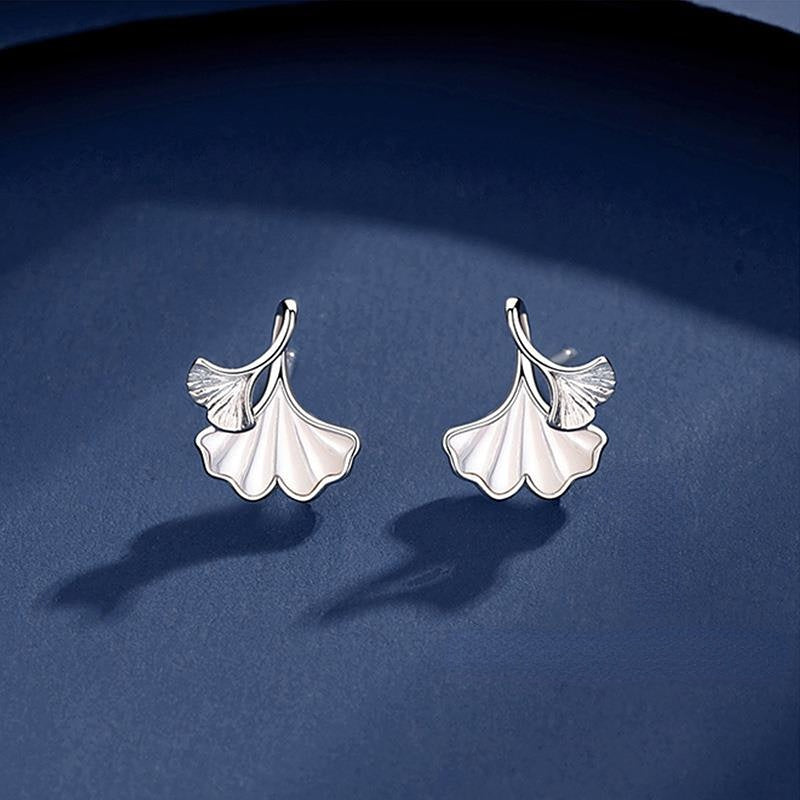 Mother of Pearl Ginkgo Leaf Silver Studs Earrings for Women