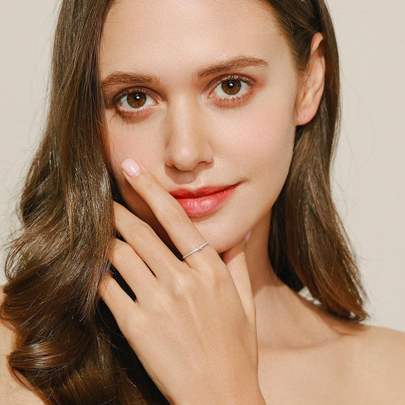 S925 Sterling Silver Joker Simple Ring Female Korea Ins Tide Micro-inlay Fine Ring Personalized Index Finger Ring Fashion Accessories