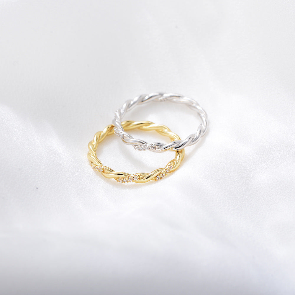 This twist line design sterling silver ring is perfect for any occasion. Made with a twist line design and decorated with small zircons, it's sure to become a treasured favorite. The classic design and quality sterling silver make it an elegant and timeless piece.
