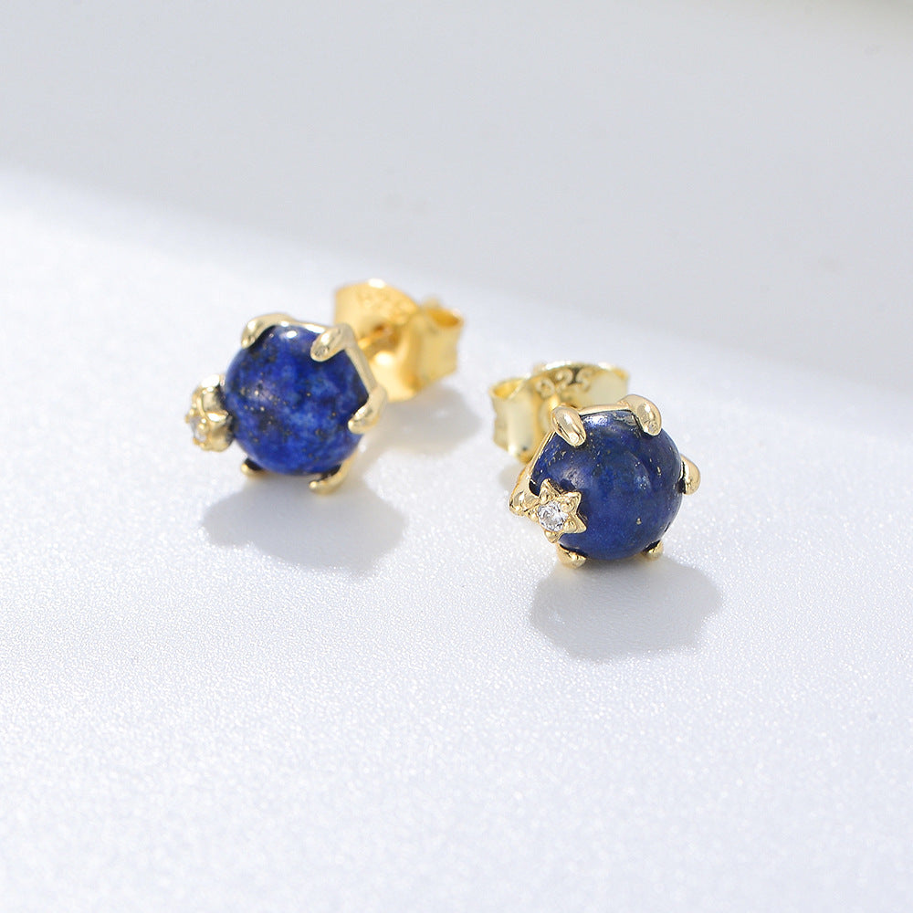 Six Prongs Natural Lapis Lazuli Beads Silver Studs Earrings for Women