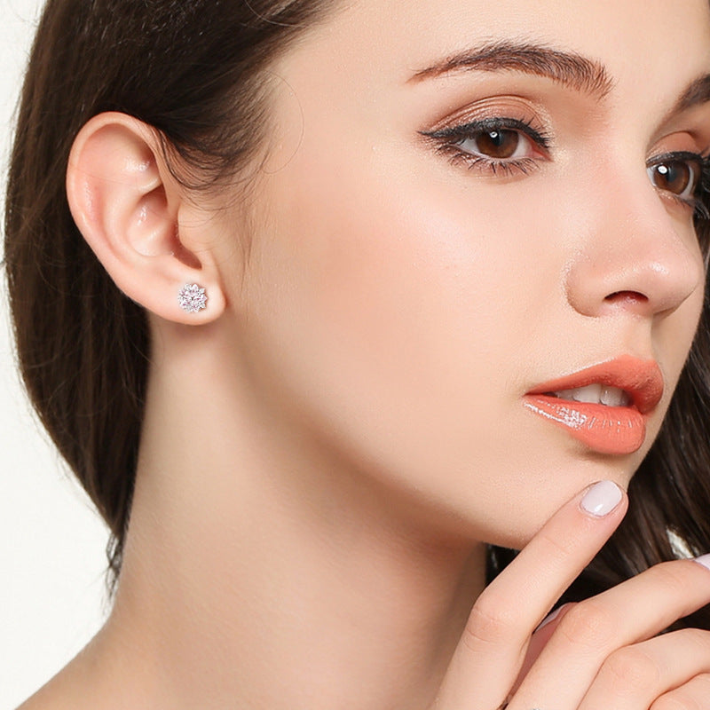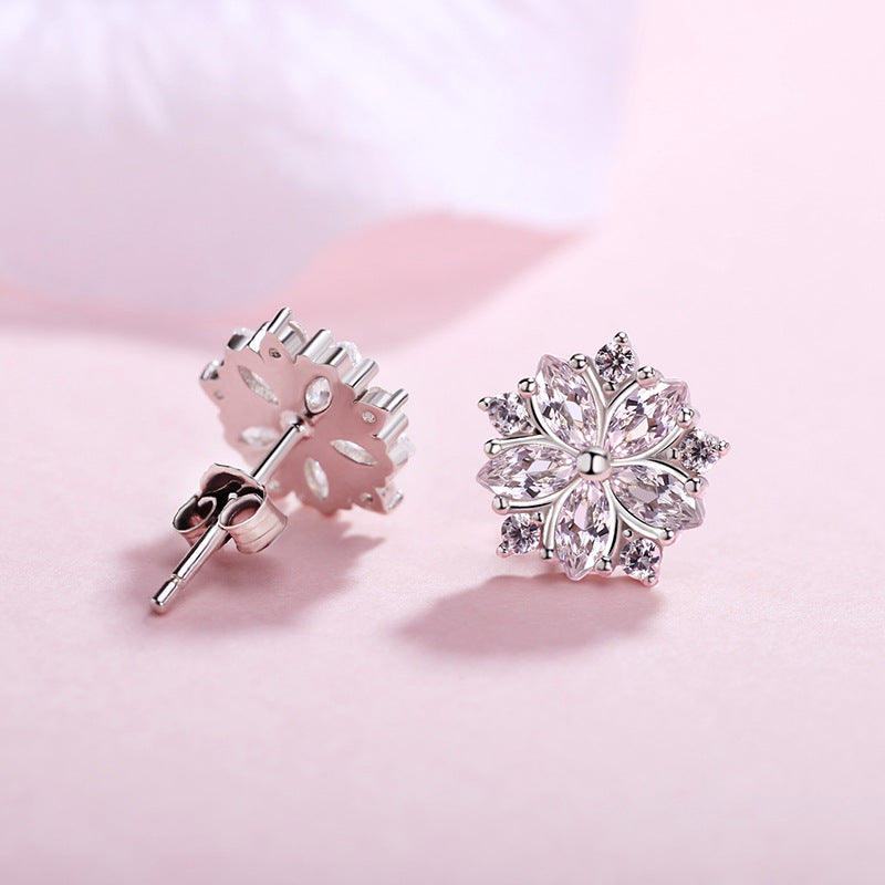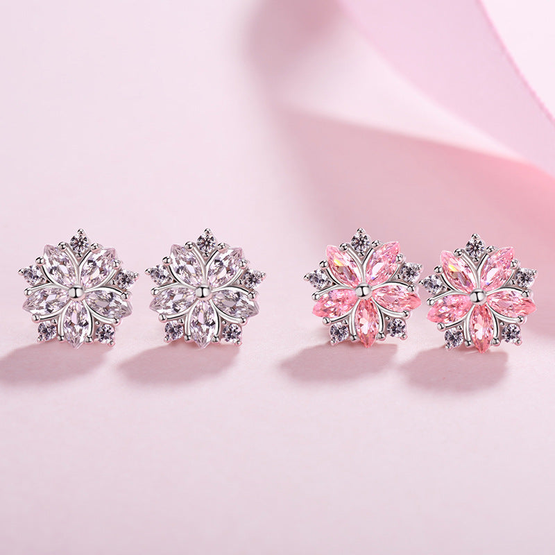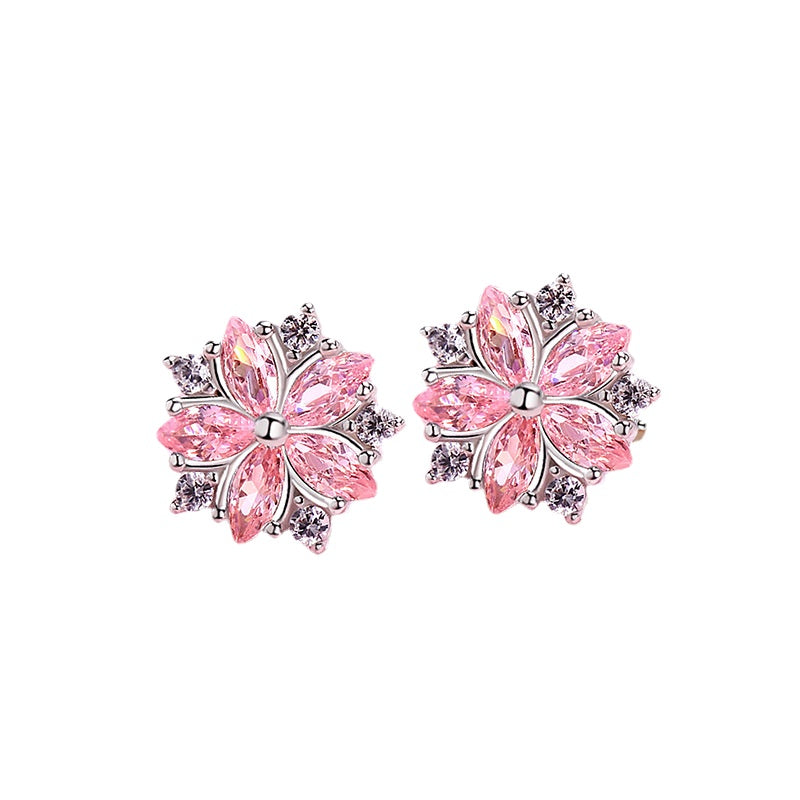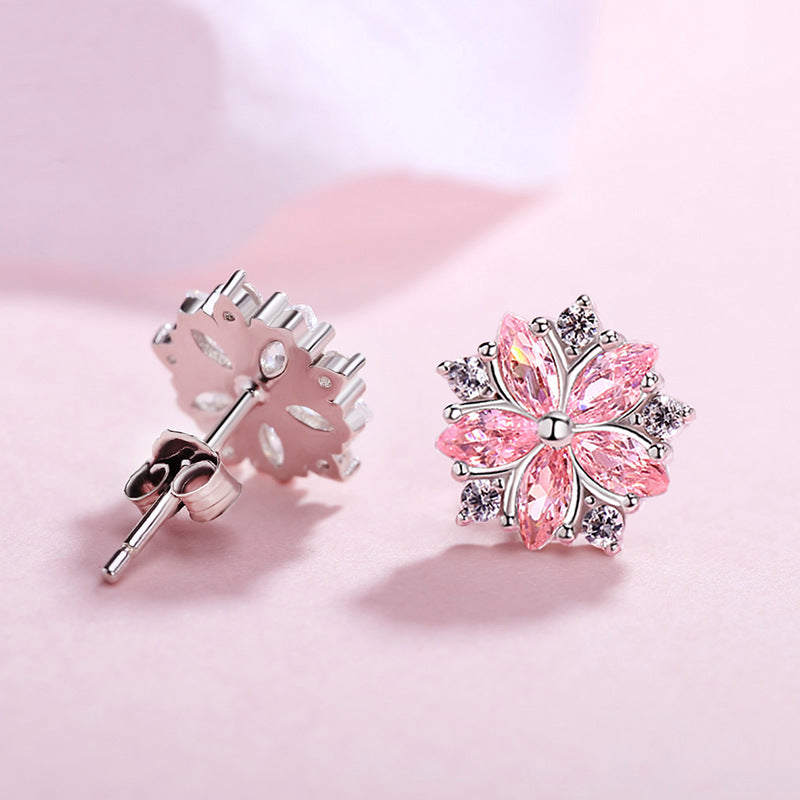 Pink Zircon Cherry Blossoms Silver Studs Earrings for Women